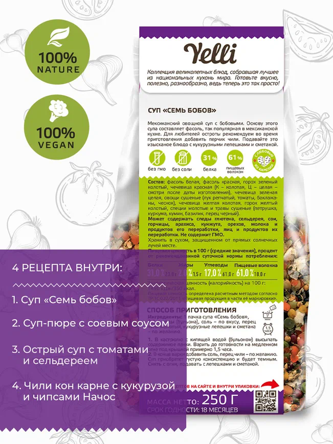Суп YELLI Семь бобов, 250г интересное: