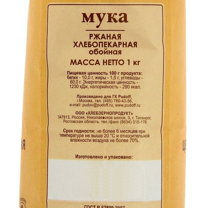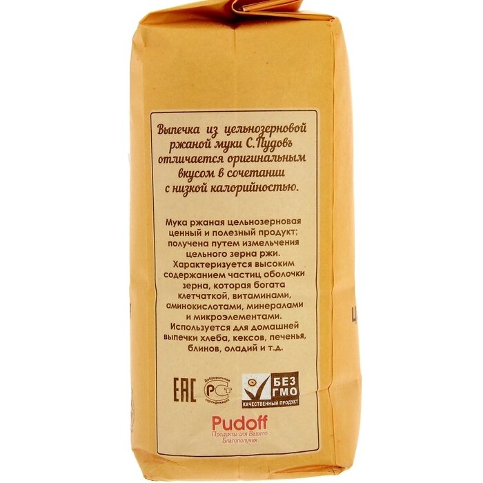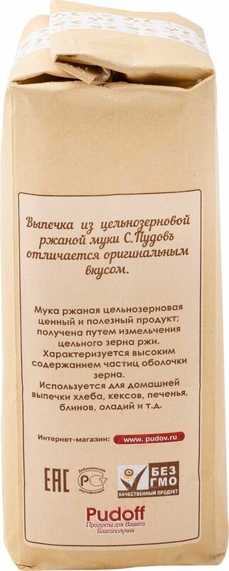 Мука ржаная С. Пудовъ, цельнозерновая, обойная, без ГМО, 1кг