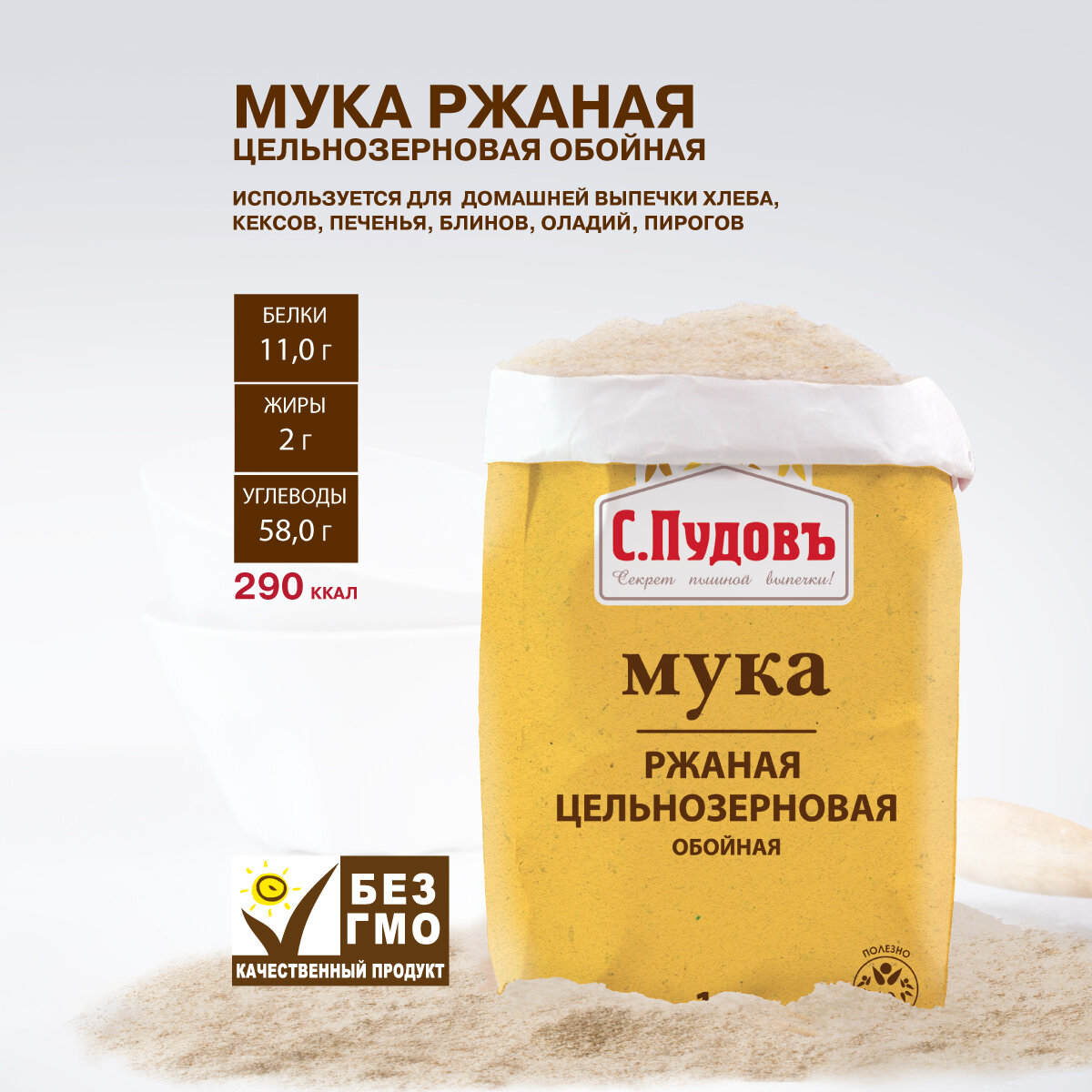 Мука ржаная цельнозерновая обойная Пудовъ, 1 кг. интересное: