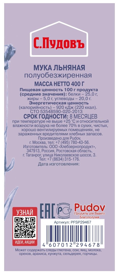 Мука льняная С.Пудовъ, 400 г интересное: