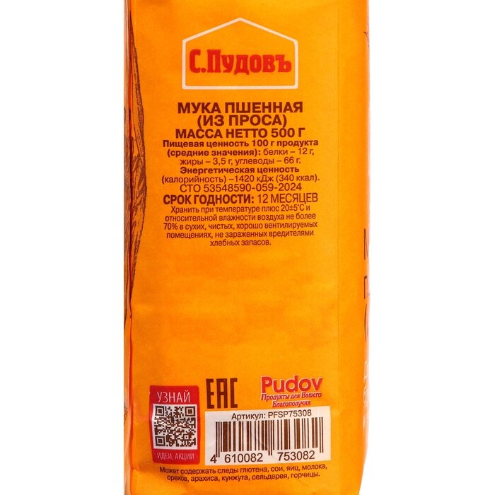 Мука пшенная (из проса) С.Пудовъ, 0,5 кг интересное: