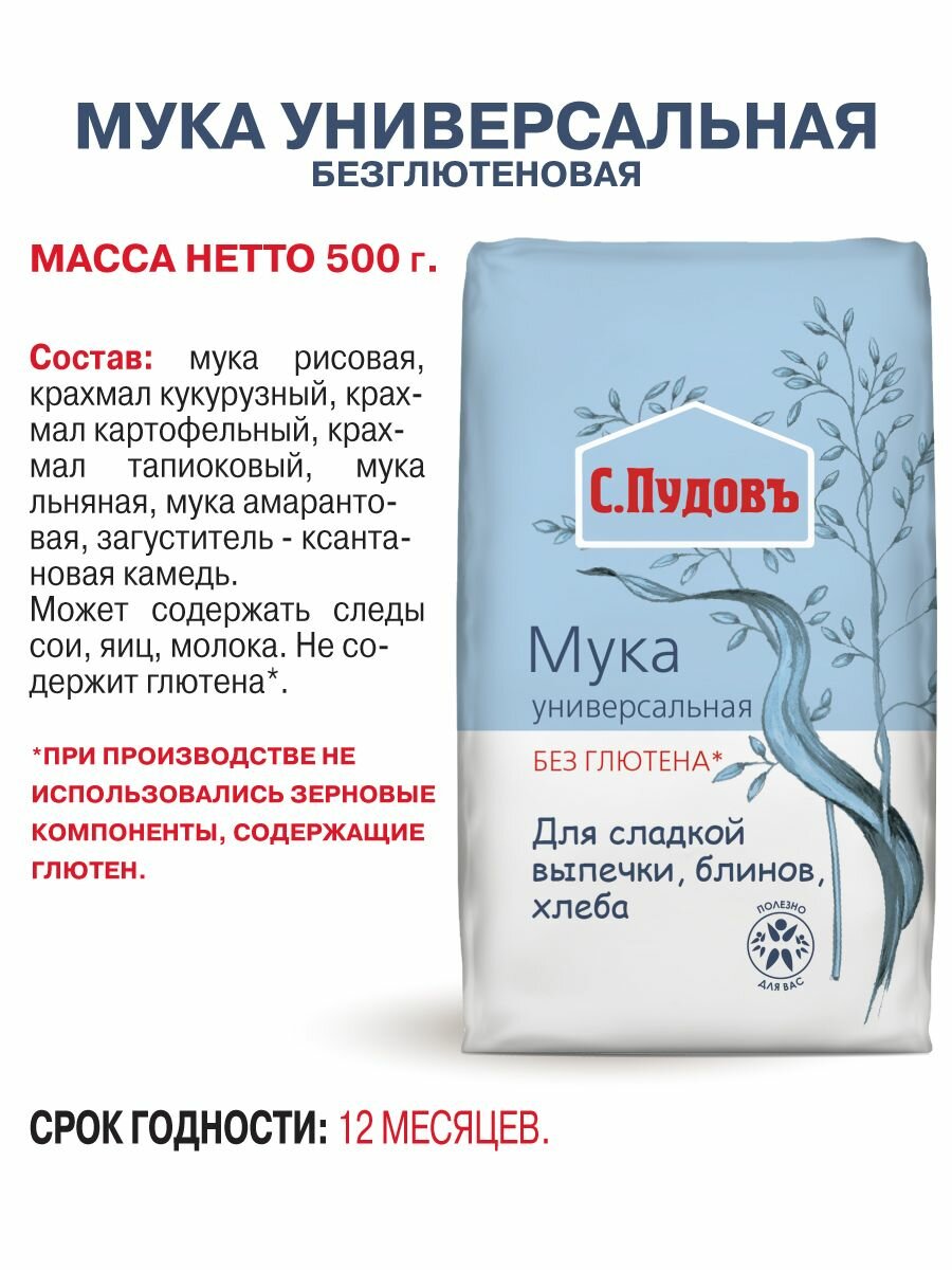 Мука универсальная без глютена С.Пудов, 0,5 кг интересное: