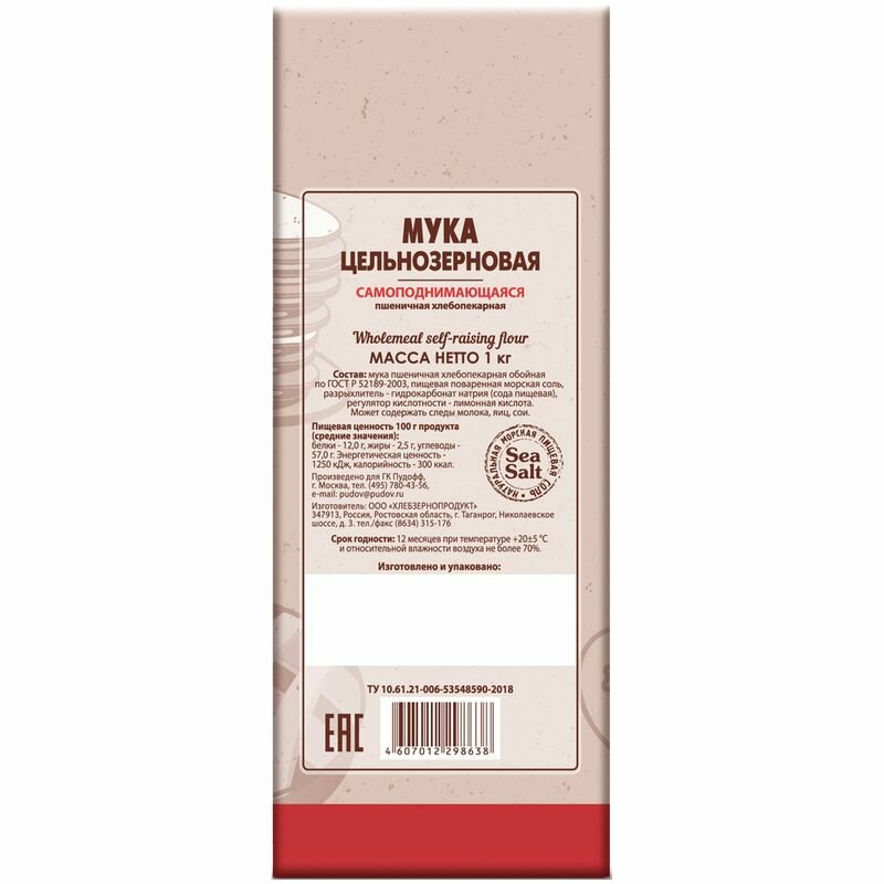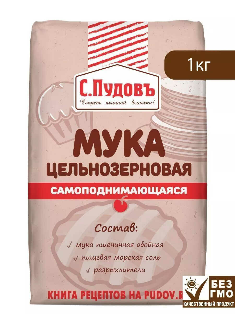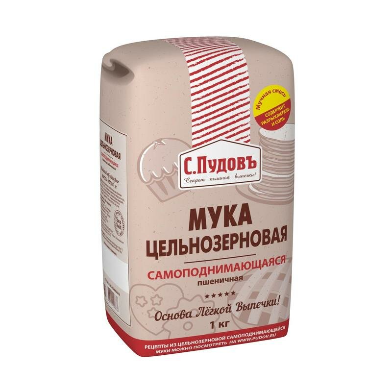 Мука цельнозерновая самоподнимающаяся пшеничная хлебопекарная С. Пудовъ, 1 кг