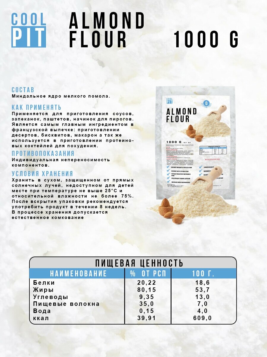 Cool Pit Миндальная мука мелкого помола 1000г интересное: