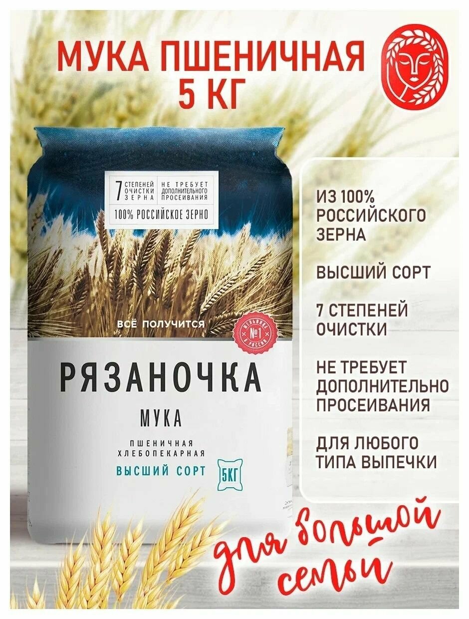 Мука Пшеничная, высший сорт, ГОСТ, Рязаночка 5 кг интересное: