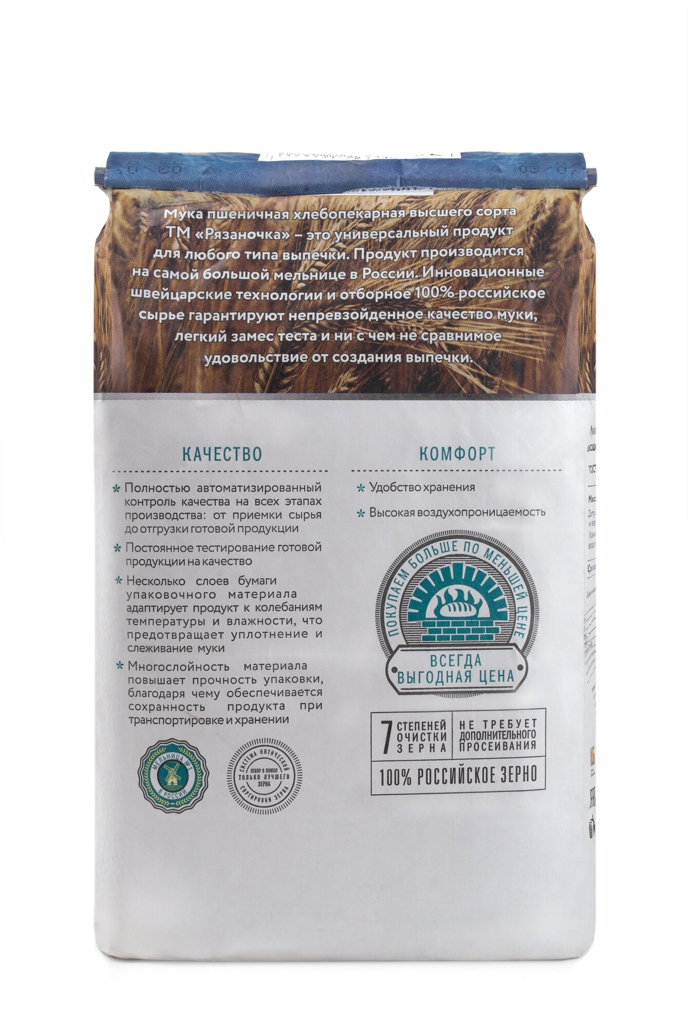 Мука пшеничная "Рязаночка Стандарт", высший сорт, для приготовления хлеба и выпечки; 5 кг, 1 штука