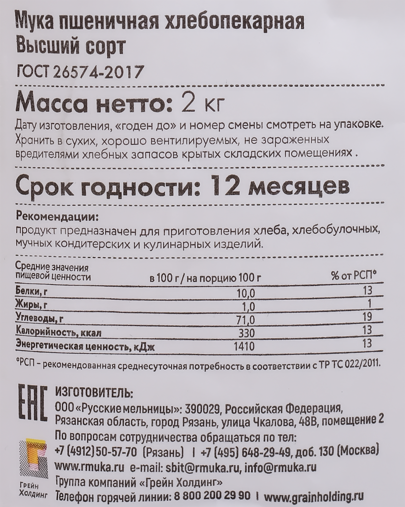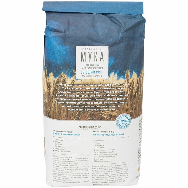 Мука пшеничная рязаночка высший сорт, 2кг интересное: