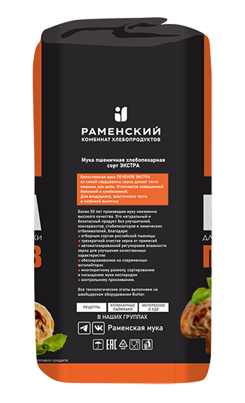 Мука Раменский комбинат хлебопродуктов пшеничная хлебопекарная высший сорт