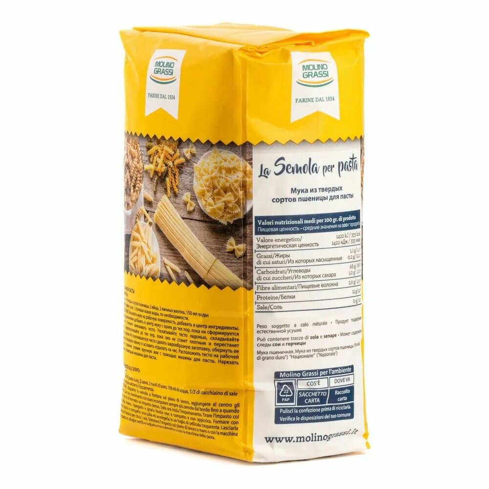 Мука Семола, из твердых сортов пшеницы, Molino Grassi, Италия, 1 кг х 2шт интересное: