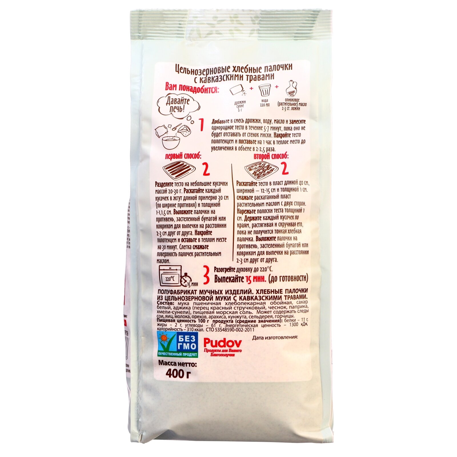 Смесь для выпечки "Хлебные палочки из цельнозерновой муки с кавказскими травами" С.Пудовъ, 400 грамм.
