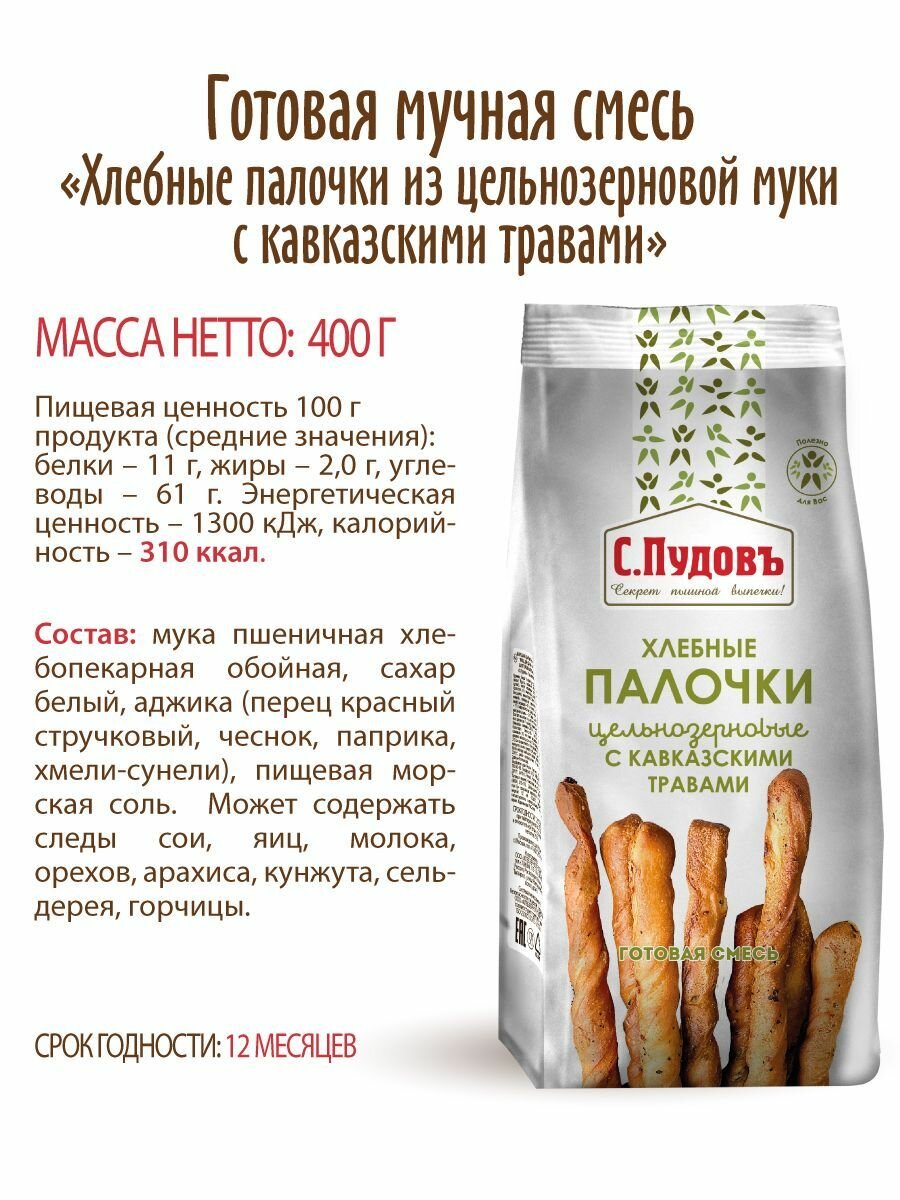 Хлебные палочки из цельнозерновой муки с кавказскими травами С.Пудовъ, 0,4 кг интересное: