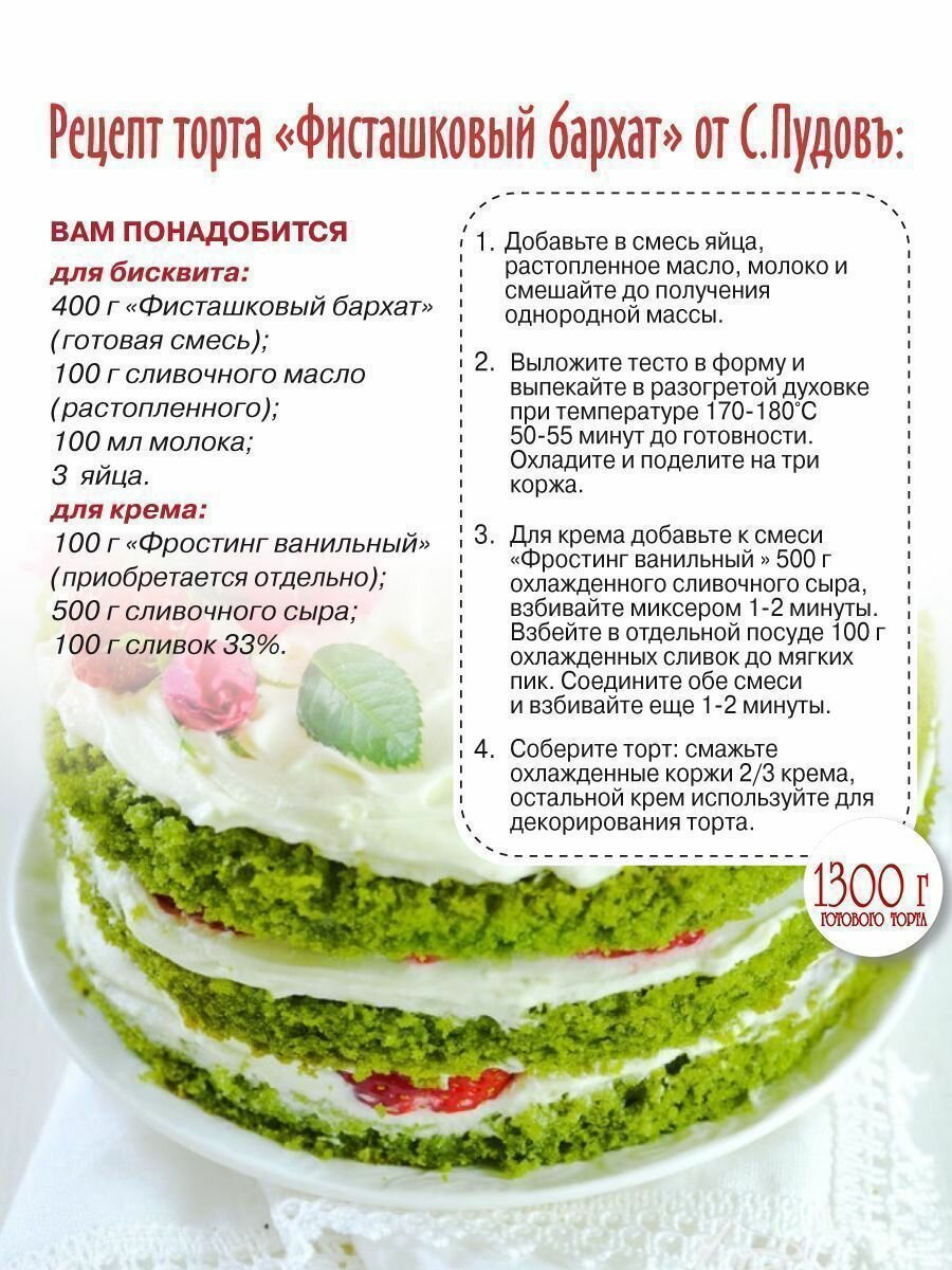 Смесь для выпечки Торт Фисташковый бархат С.Пудовъ, 400 г интересное: