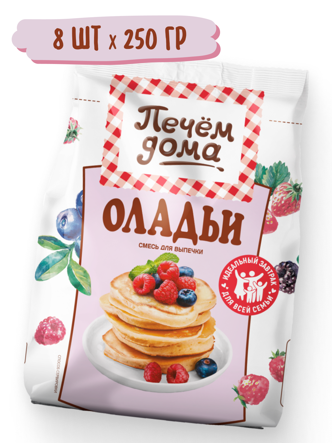 Купить Смесь для выпечки Печем дома Оладьи 250 гр x 8 шт в коробке, Русский Продукт