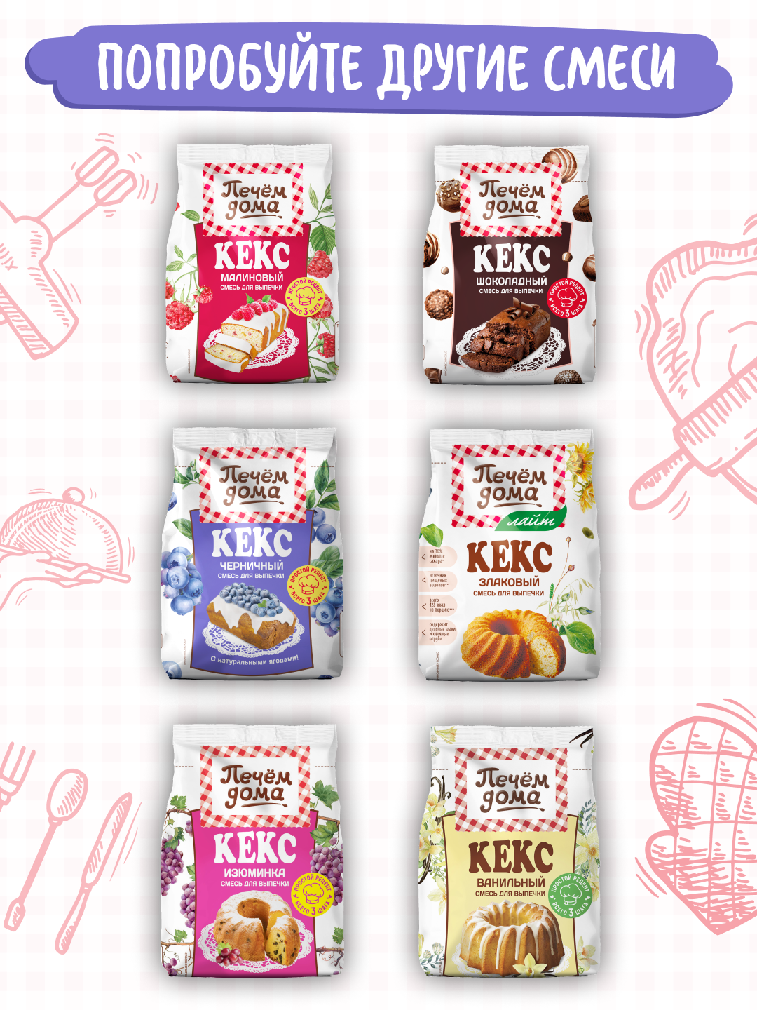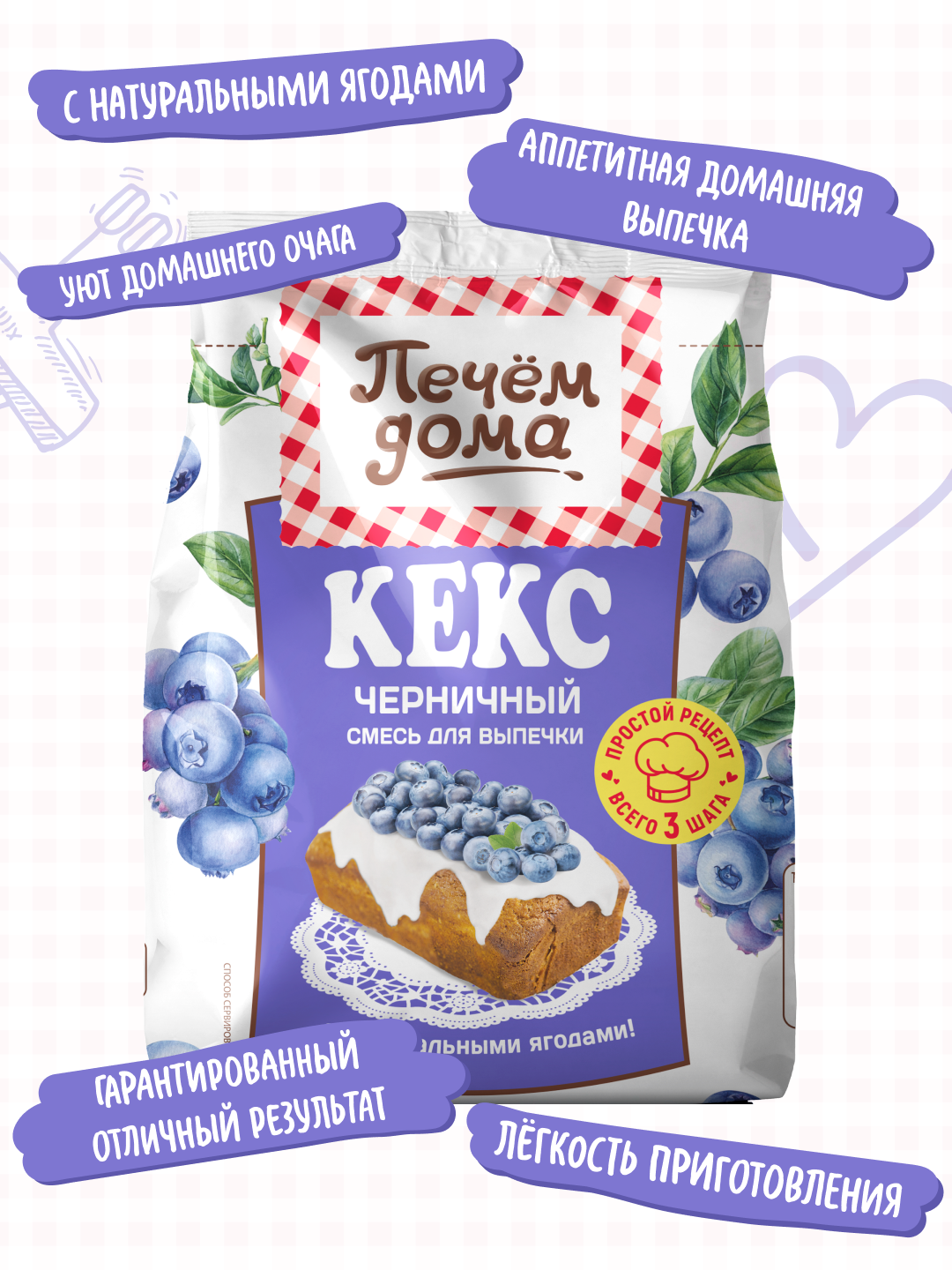 Смесь для выпечки Кекс Печем дома Черничный 300 гр x 8 штук в коробке, Русский Продукт интересное: