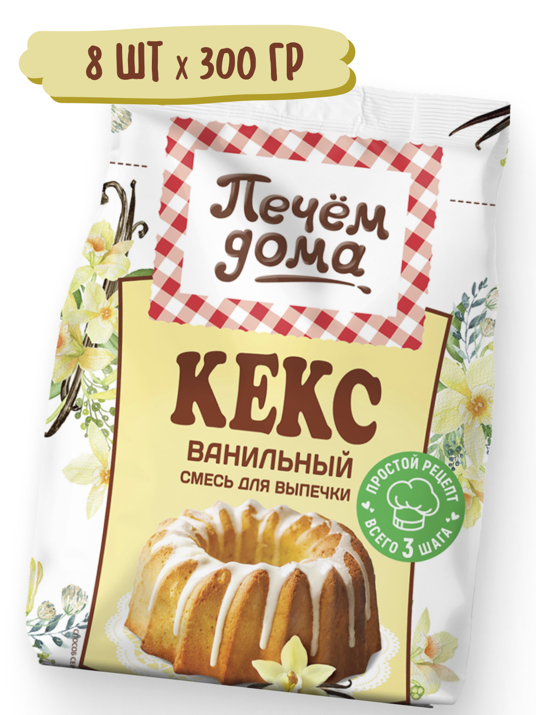 Купить Смесь для выпечки Кекс Печем дома Ванильный 300 гр x 8 упаковок в коробке