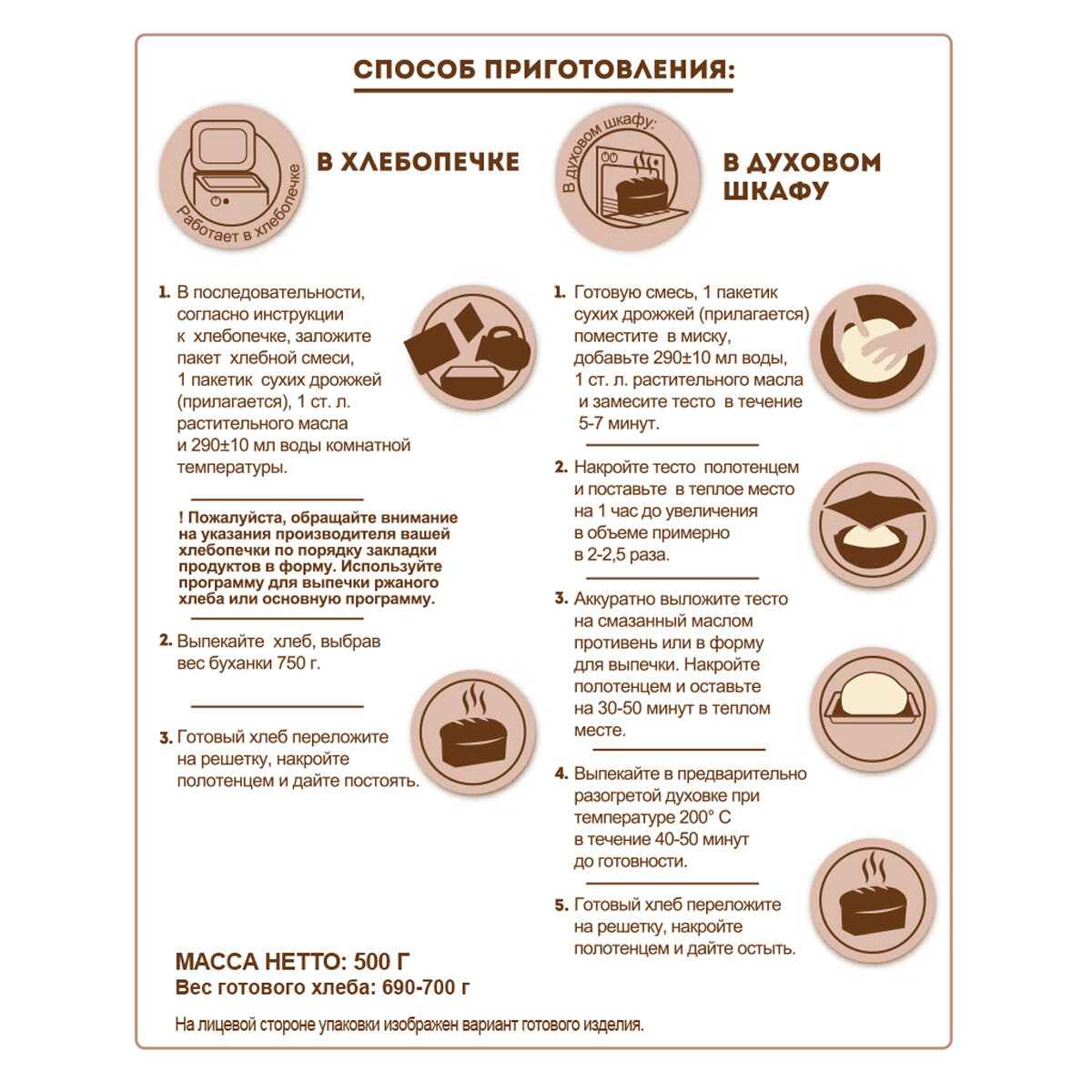 | Состав | мука пшеничная хлебопекарная 1-го сорта, семена подсолнечника, мука ржаная хлебопекарная обдирная, мука льняная, ржаной ферментированный солод, мука гречневая, пшеничные отруби, пищевая морская соль, дрожжи хлебопекарные сухие (в отдельном пакете), пшеничная клейковина, пищевая добавка: улучшитель "экстра-р" (солод ржаной ферментированный, регулятор кислотности - лимонная кислота, антиокислитель - аскорбиновая кислота) |