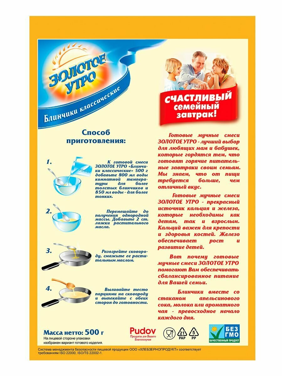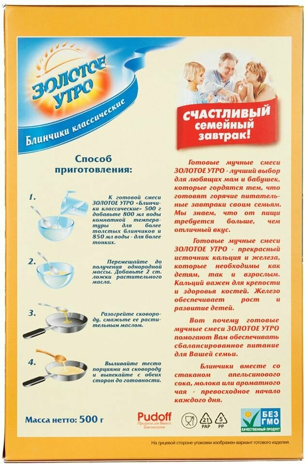 Купить Смесь для выпечки Блинчики классические Золотое Утро, 500 г