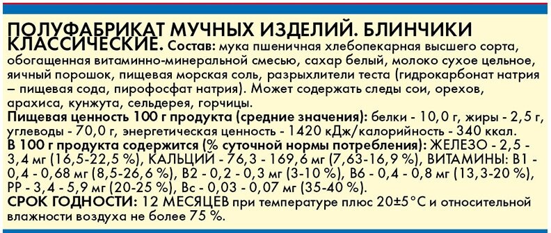 Блины дрожжевые, 400 г