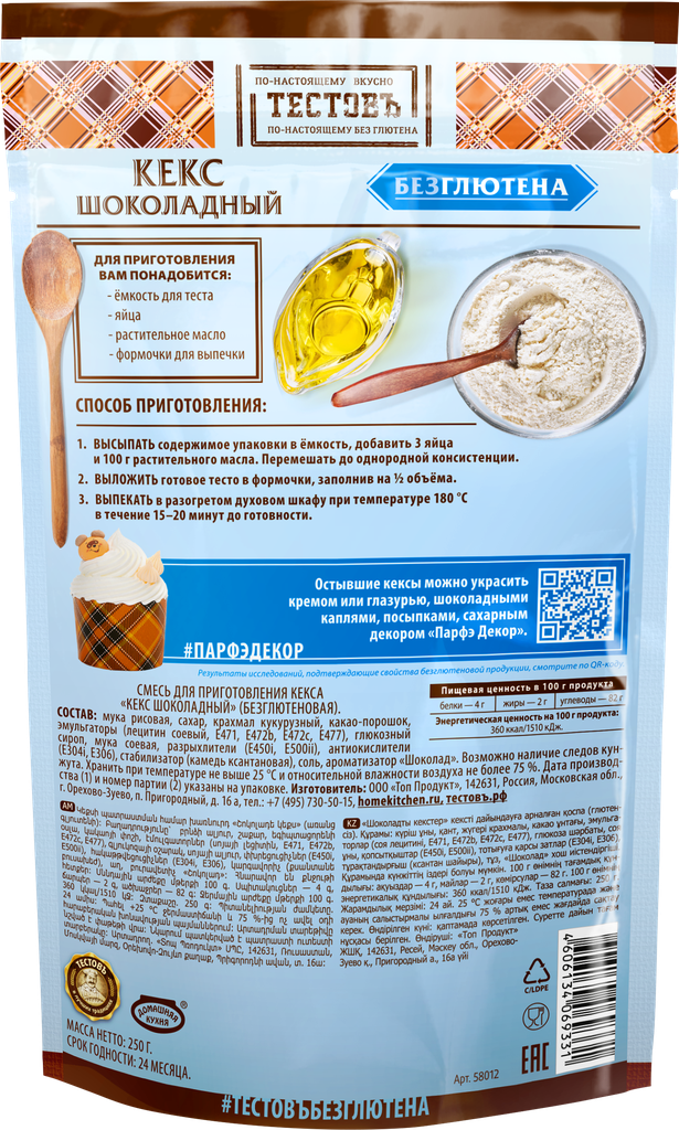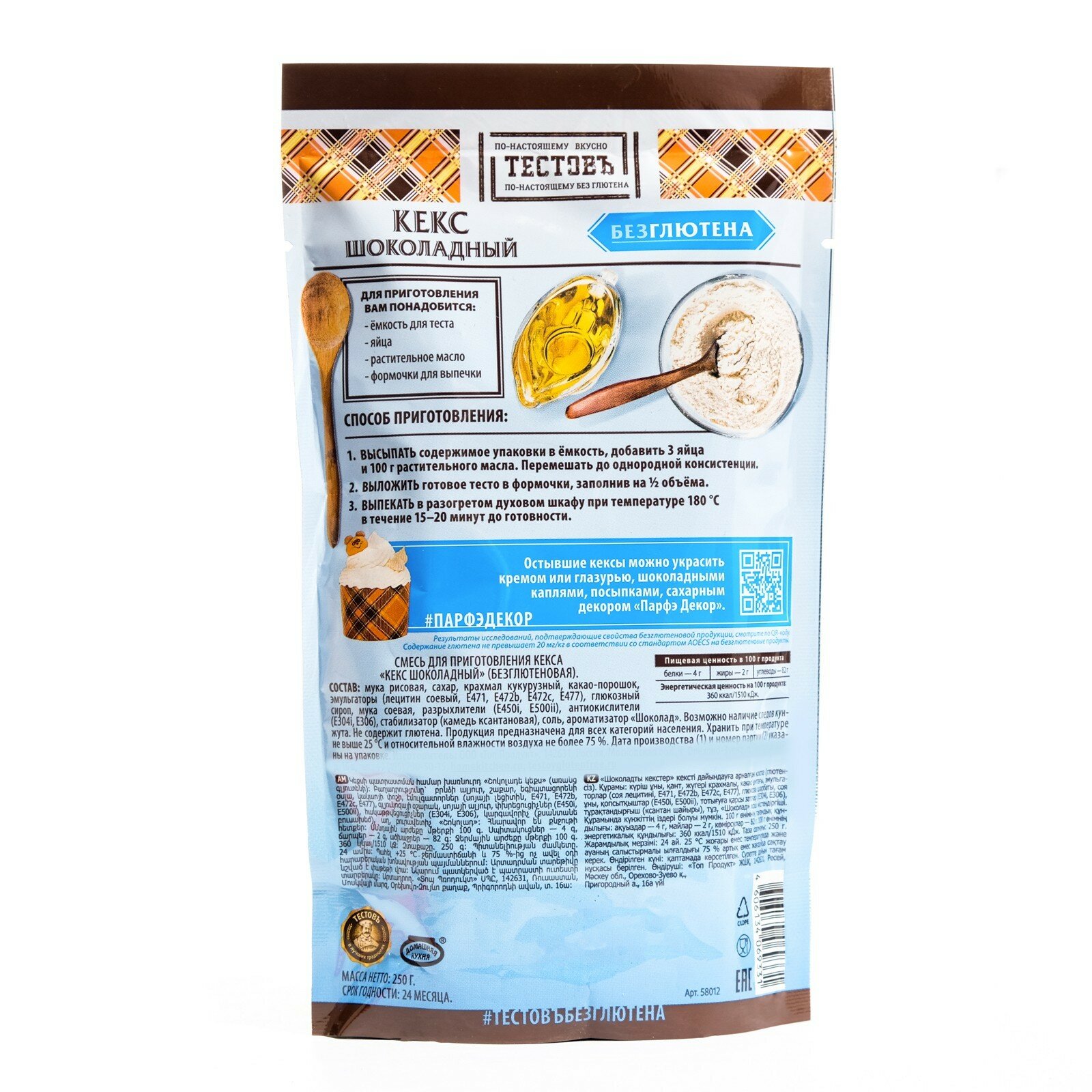 Тестовъ смесь для Смесь для выпечки Кекс шоколадный без глютена, 250 г интересное: