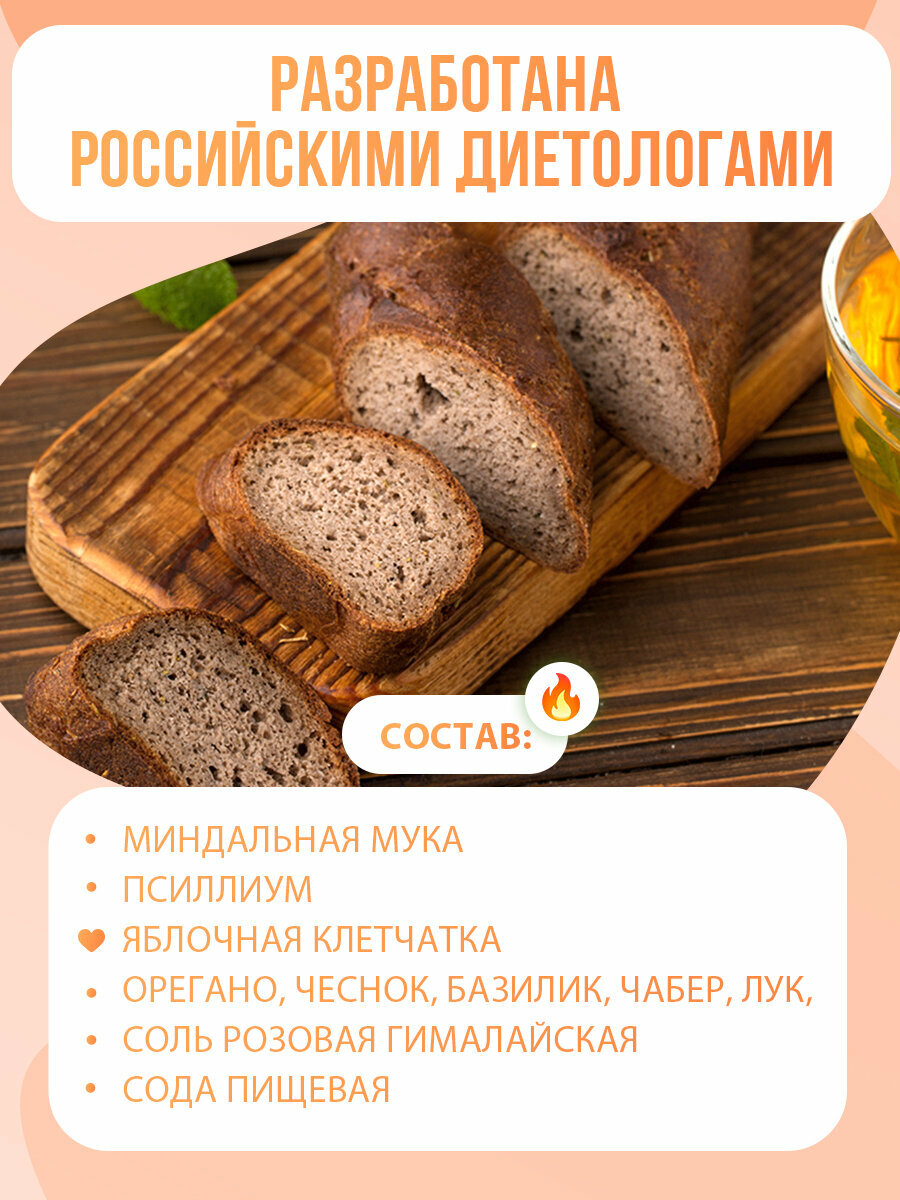 | Состав | миндальная мука, псиллиум, яблочная клетчатка, орегано, чеснок, базилик, чабер, лук, соль розовая гималайская, сода пищевая |
