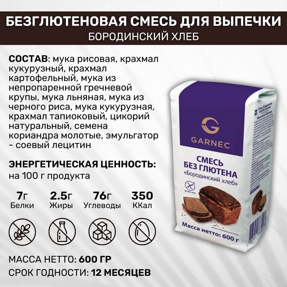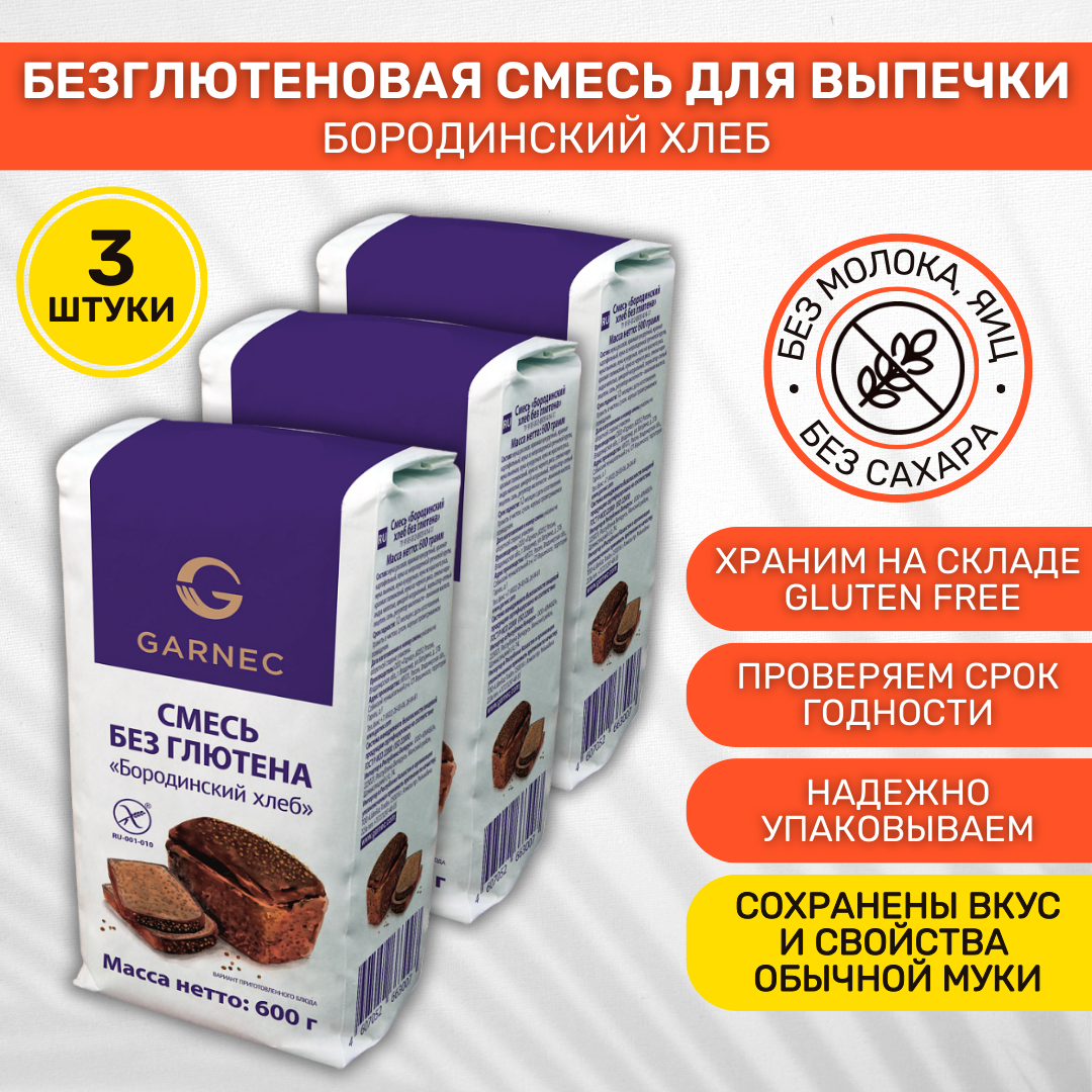 Смесь для выпечки без глютена Garnec Гарнец Бородинский хлеб 3 шт по 600г интересное: