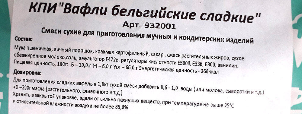 Смесь для выпечки КПИ «Вафли бельгийские сладкие», 1 кг интересное:
