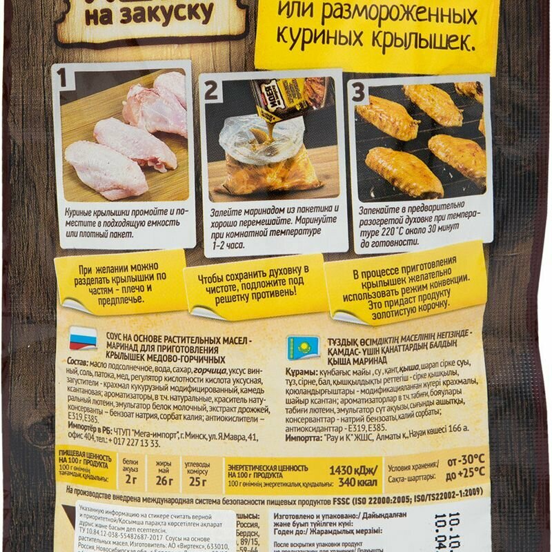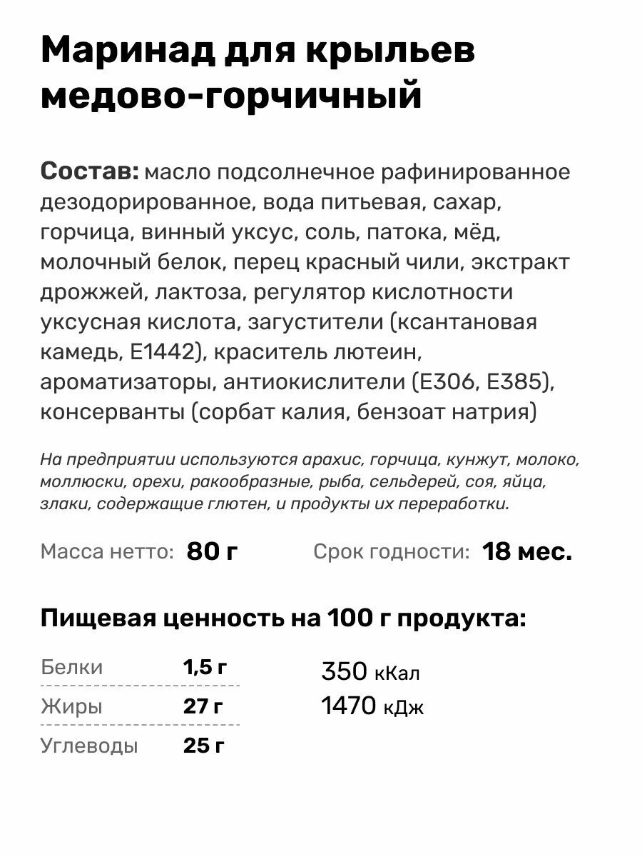 Маринад для приготовления крылышек медово-горчичных, 80 г интересное: