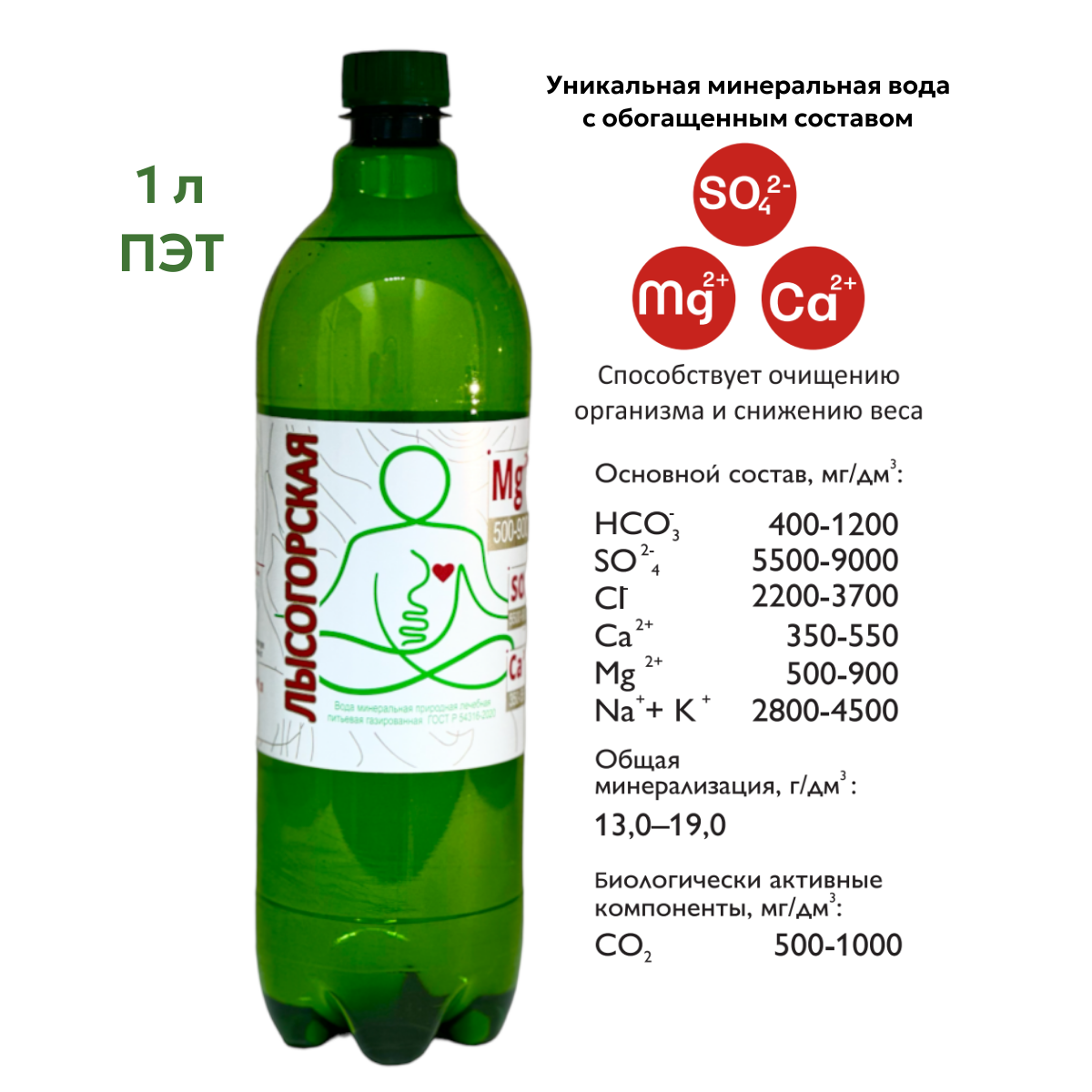 Минеральная вода "Лысогорская" 1 л, ПЭТ, газированная природная питьевая 1шт интересное: