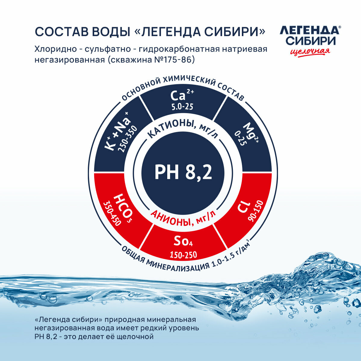 Вода минеральная Легенда Сибири природная щелочная без газа, 1.0 л -6 шт интересное: