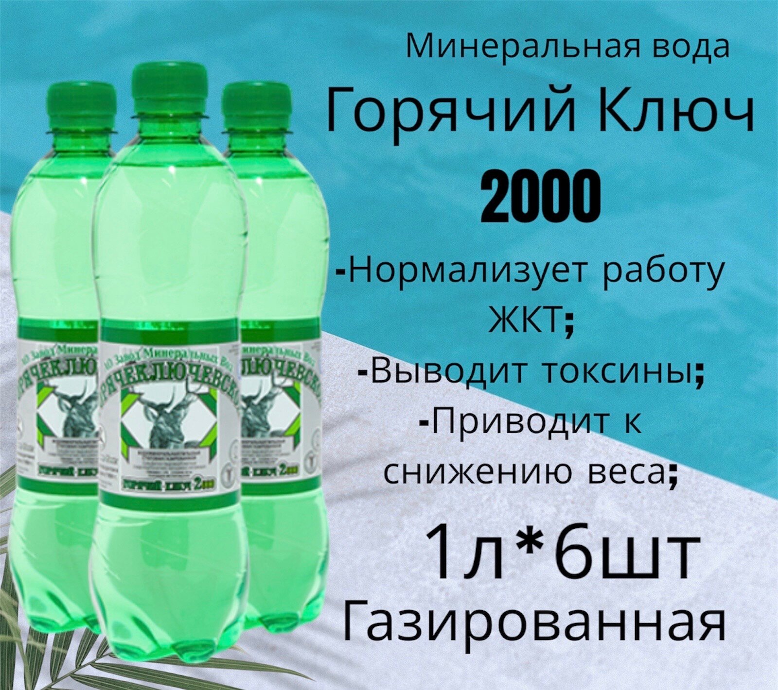 Купить Вода Горячий Ключ 2000. Объем 1л*6. Вода минеральная питьевая газированная природная целебная лечебная, выводит токсины, для детей