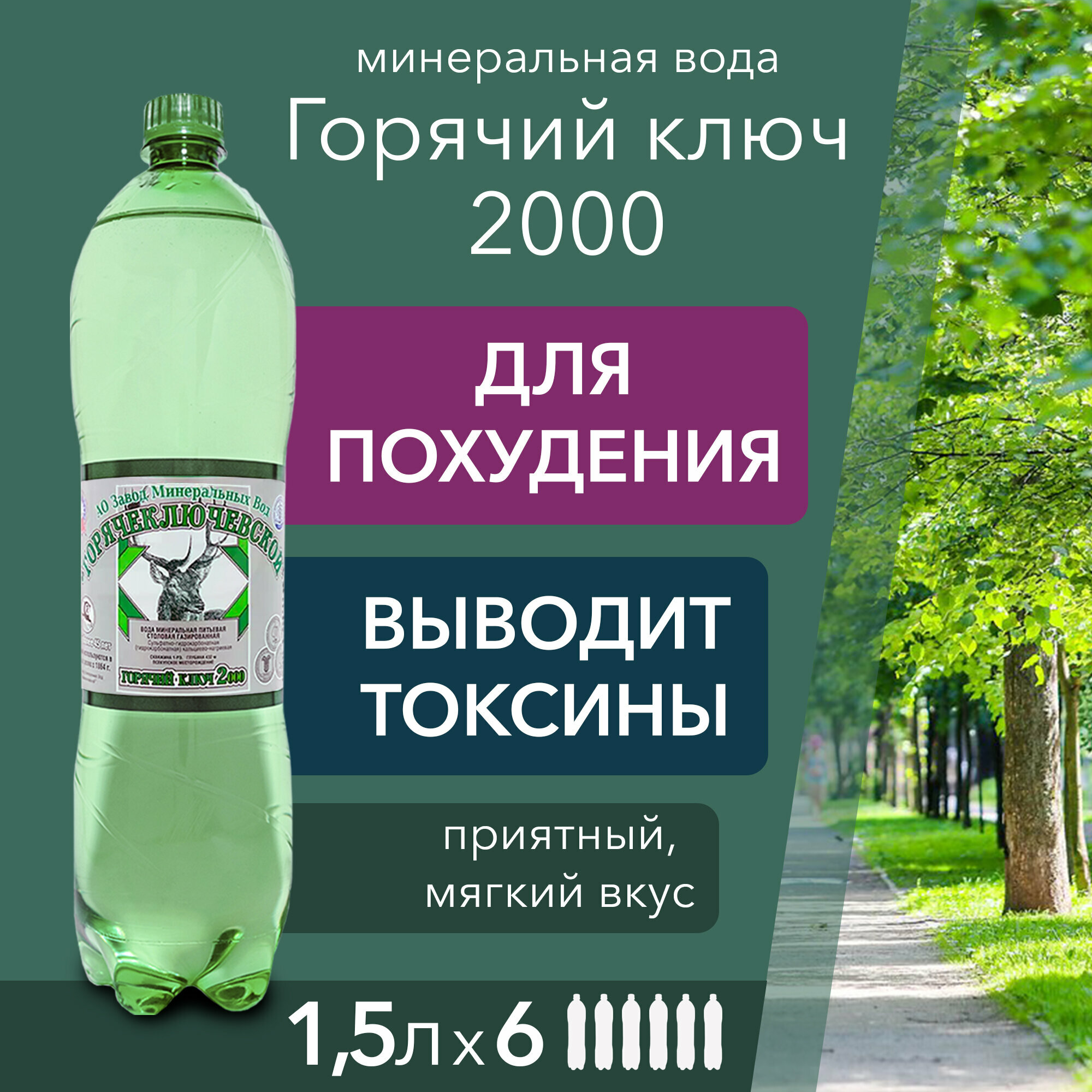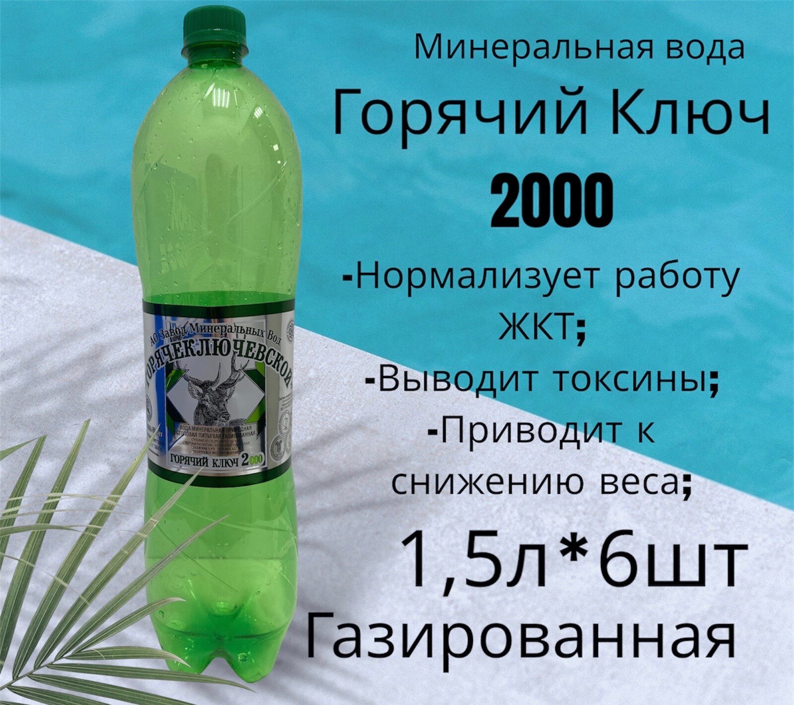 Вода Горячий Ключ 2000. Объем 1.5л*6. Вода минеральная питьевая газированная природная целебная лечебная, выводит токсины, для детей