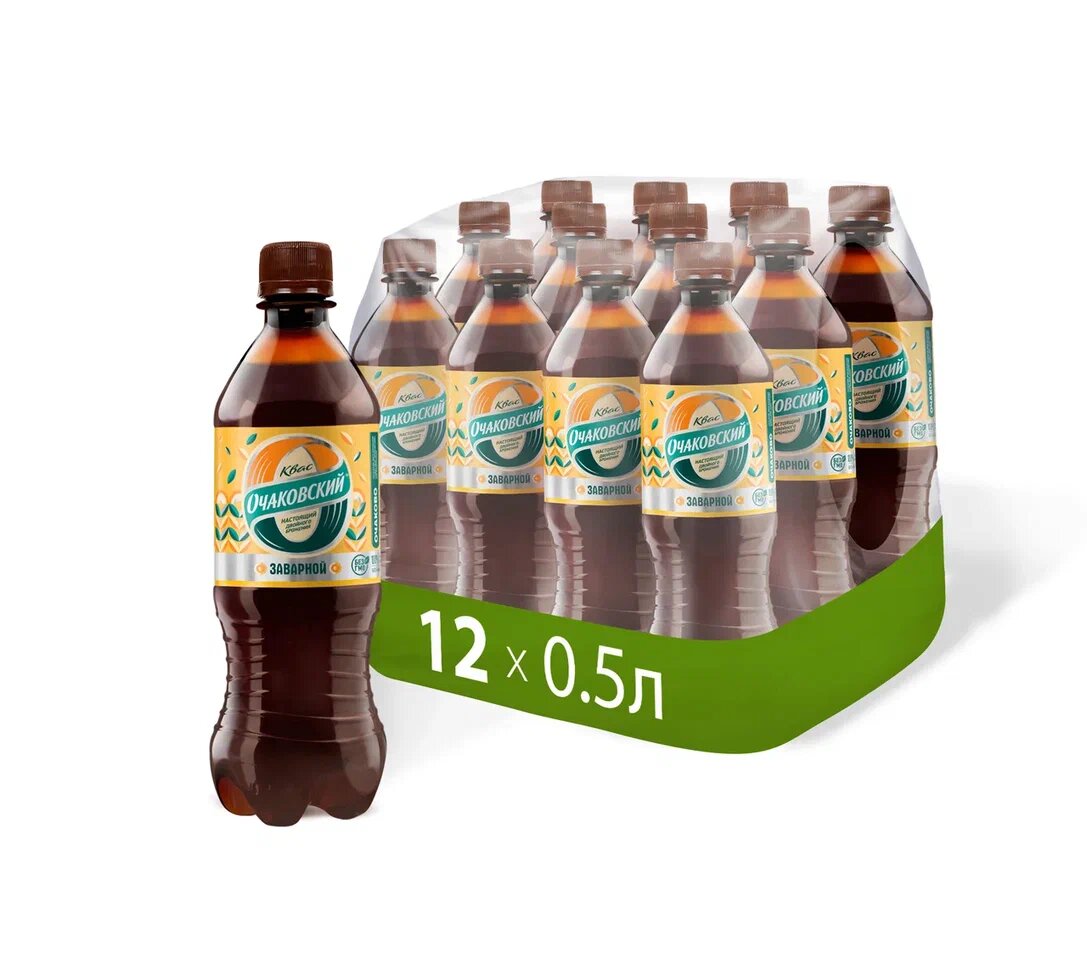 Купить Квас "Очаковский. Заварной" фильтрованный осветленный, ПЭТ 0.5 (упаковка 12шт)