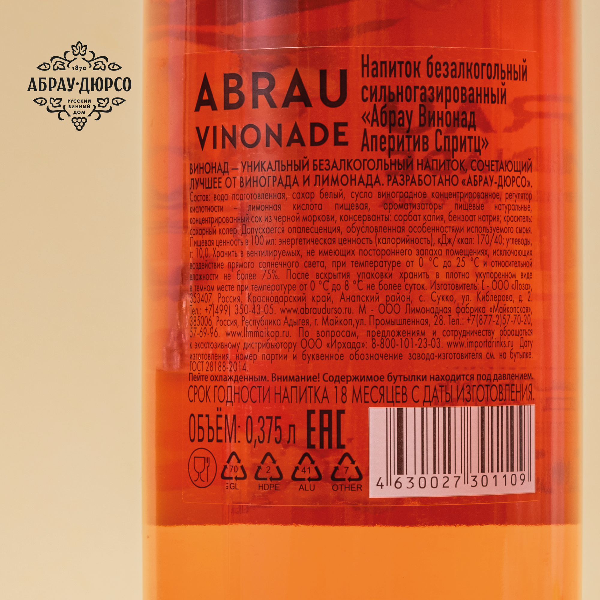 Безалкогольный напиток лимонад Абрау Винонад Аперитив-Спритц интересное: