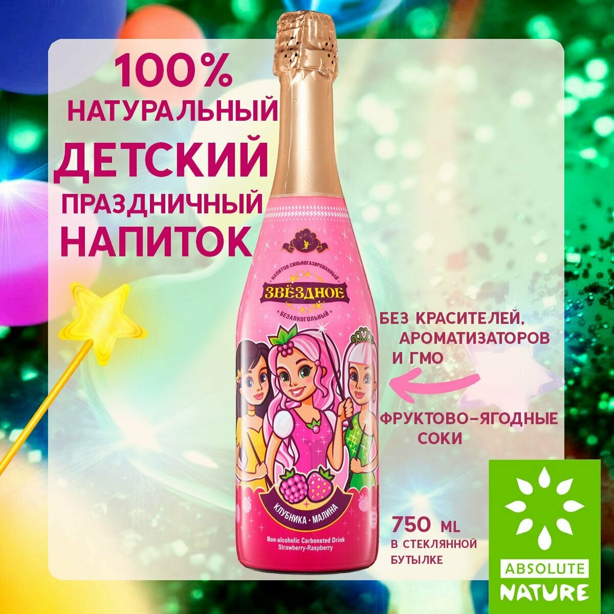 Лимонад детское безалкогольное шампанское Absolute Nature "Звездное" клубника-малина 0,75 л. на день рождения интересное:
