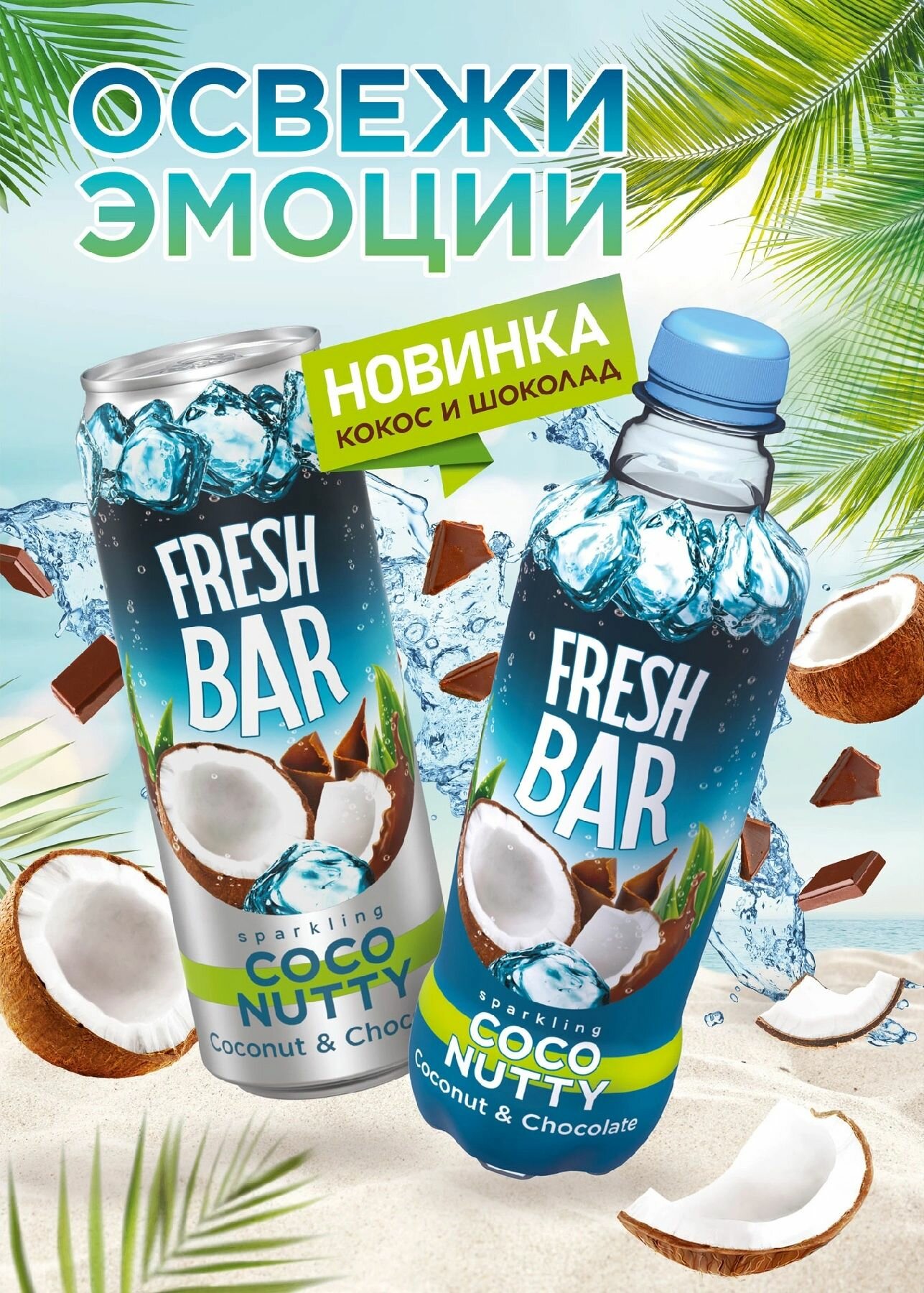 Купить Газированый напиток Fresh Bar Coco Nutty/ Кокос и Шоколад 0,48л 12 штук (Банка) New