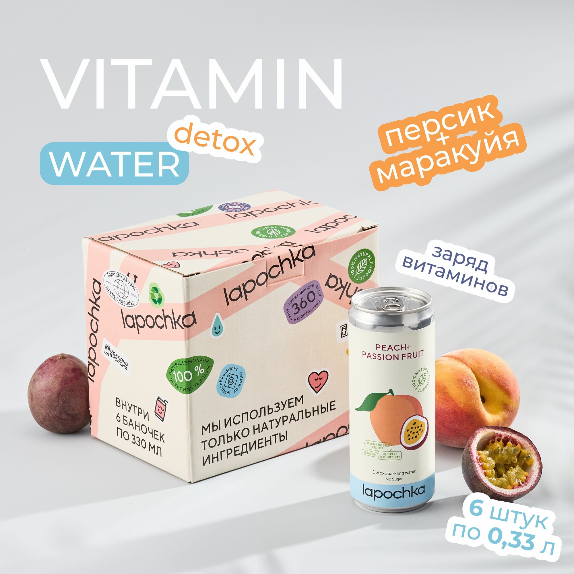 Купить Напиток среднегазированный без сахара LAPOCHKA DETOX Персик + Маракуйя 6 х 0,33 л