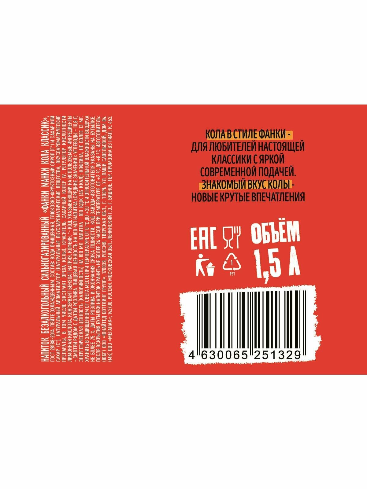 Газированный напиток FUNKY MONKEY Cola Classic 1,5 л.х 6 шт. ПЭТ интересное: