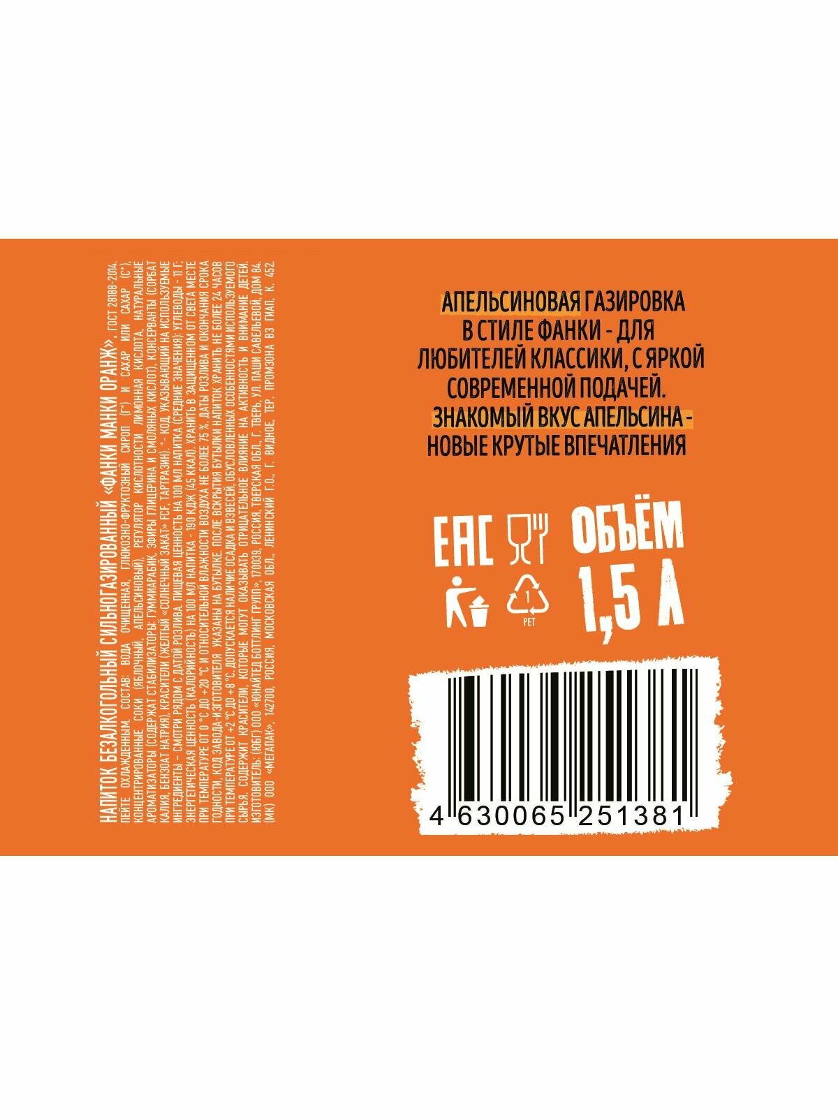 Газированный напиток FUNKY MONKEY Orange 1,5 л.x 6 шт. интересное: