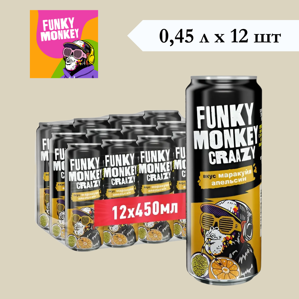 Напиток газированный Funky Monkey (Фанки Манки) Craazy, Маракуйя-Апельсин, 0,45 л х 12 банок интересное: