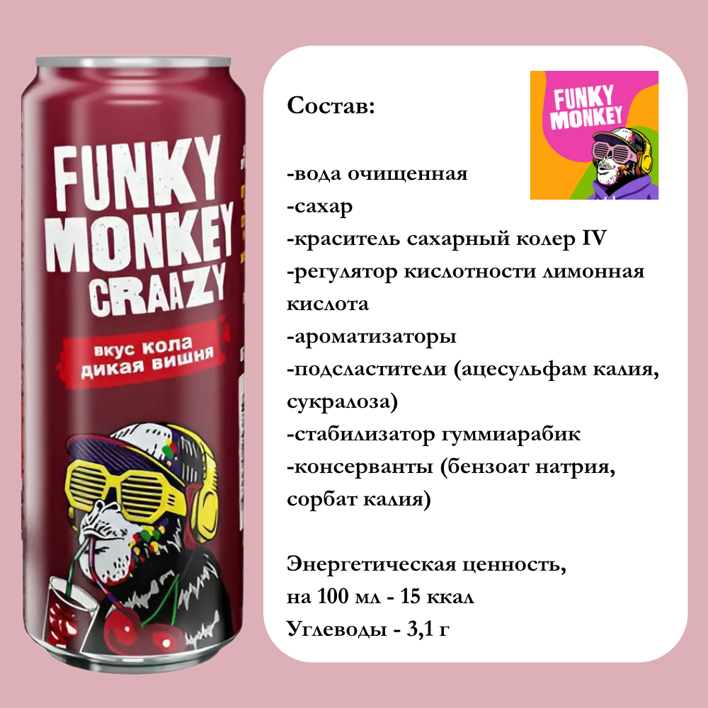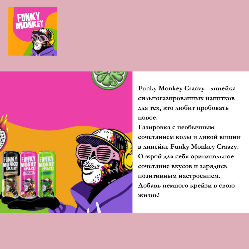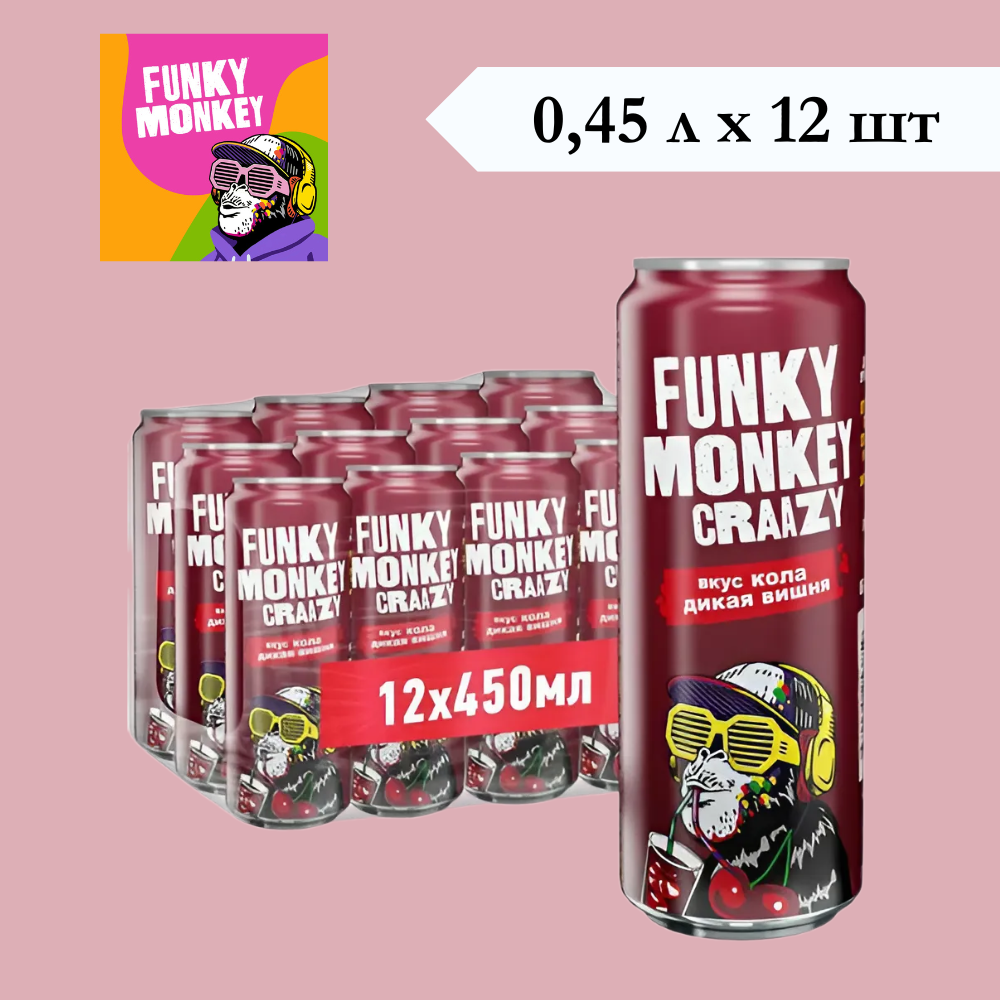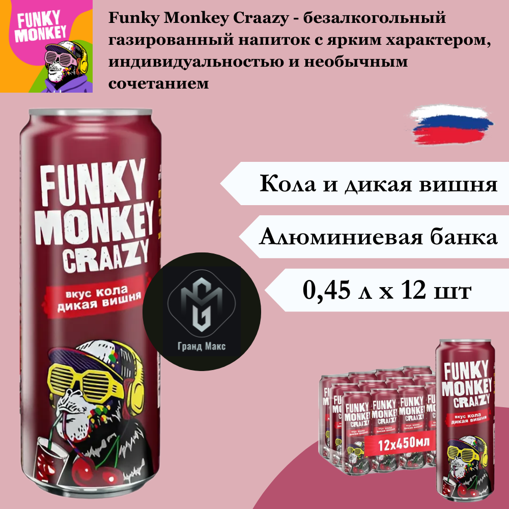 Напиток газированный Funky Monkey (Фанки Манки) Craazy, Маракуйя-Апельсин, 0,45 л х 12 банок
