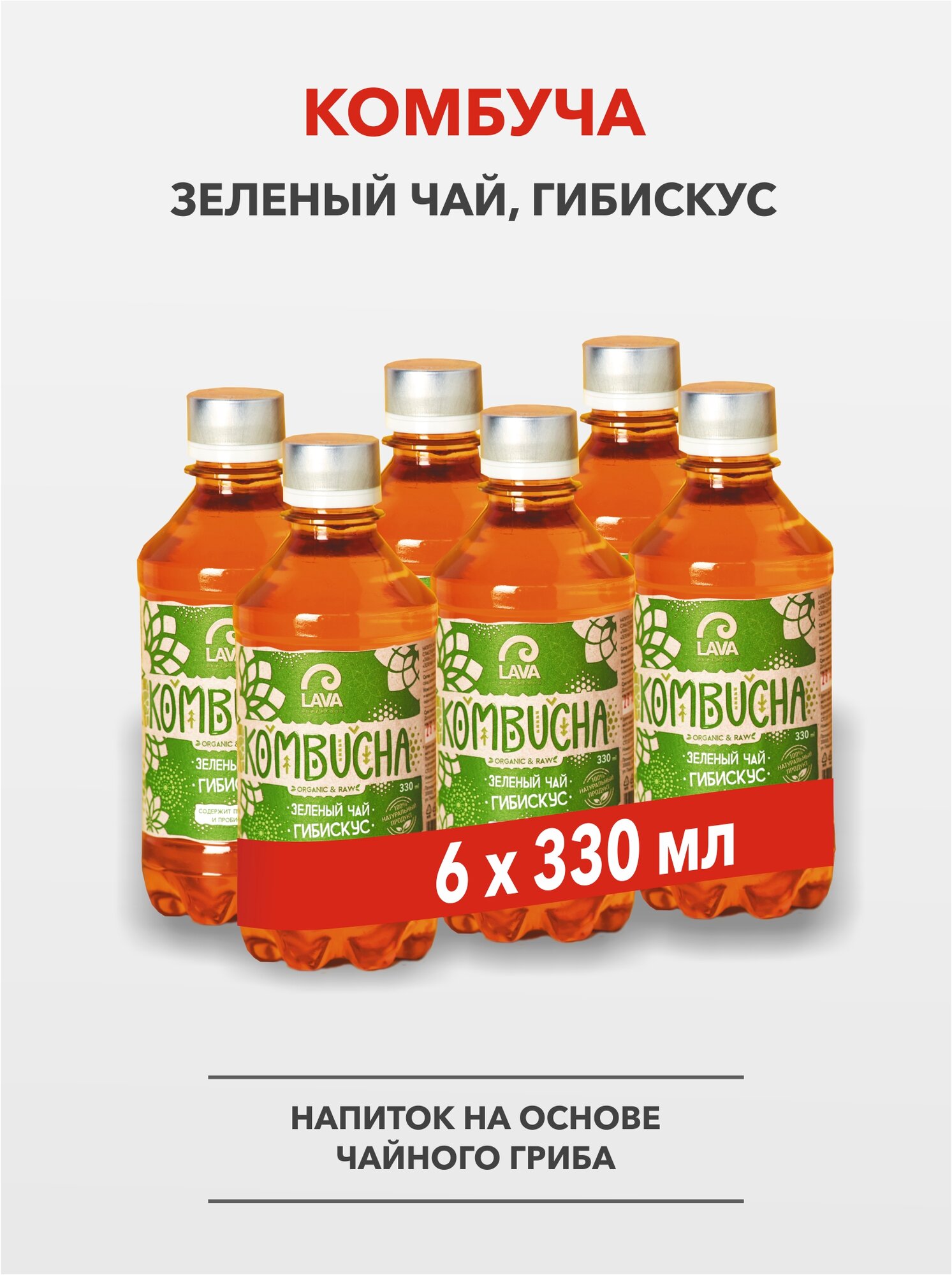 Купить Комбуча Lava Superfood Kombucha Зеленый чай, гибискус, 6x0,33л