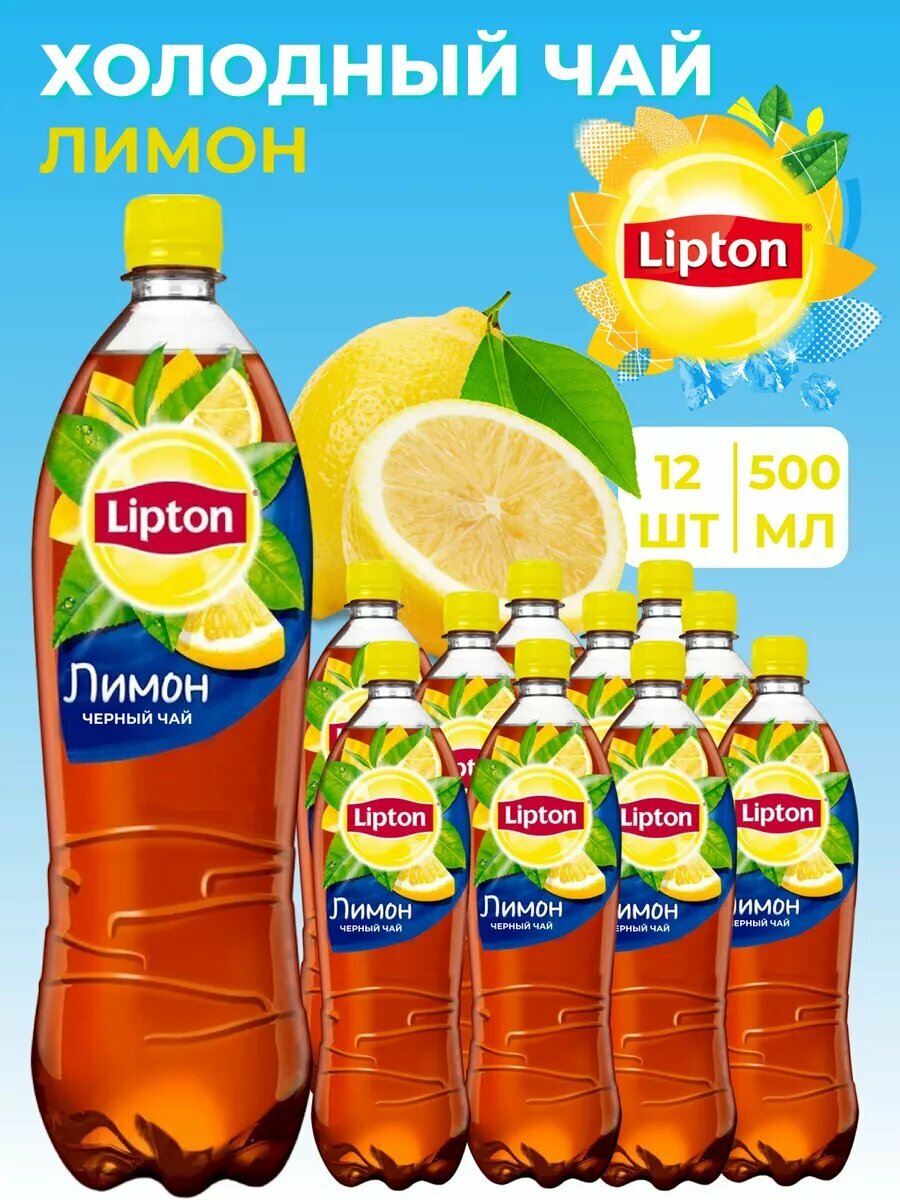 Купить Холодный черный чай Липтон с Лимоном 12 шт по 0,5 л