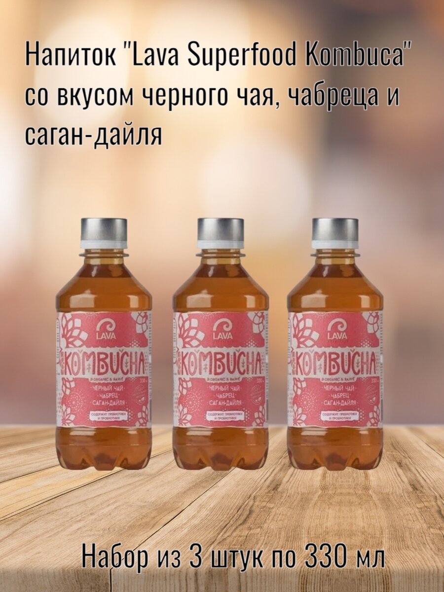 Напиток "Lava Superfood Kombucha" черный чай, чабрец, саган-дайля, 330 мл (Хозсфера) 3 шт. в наборе интересное: