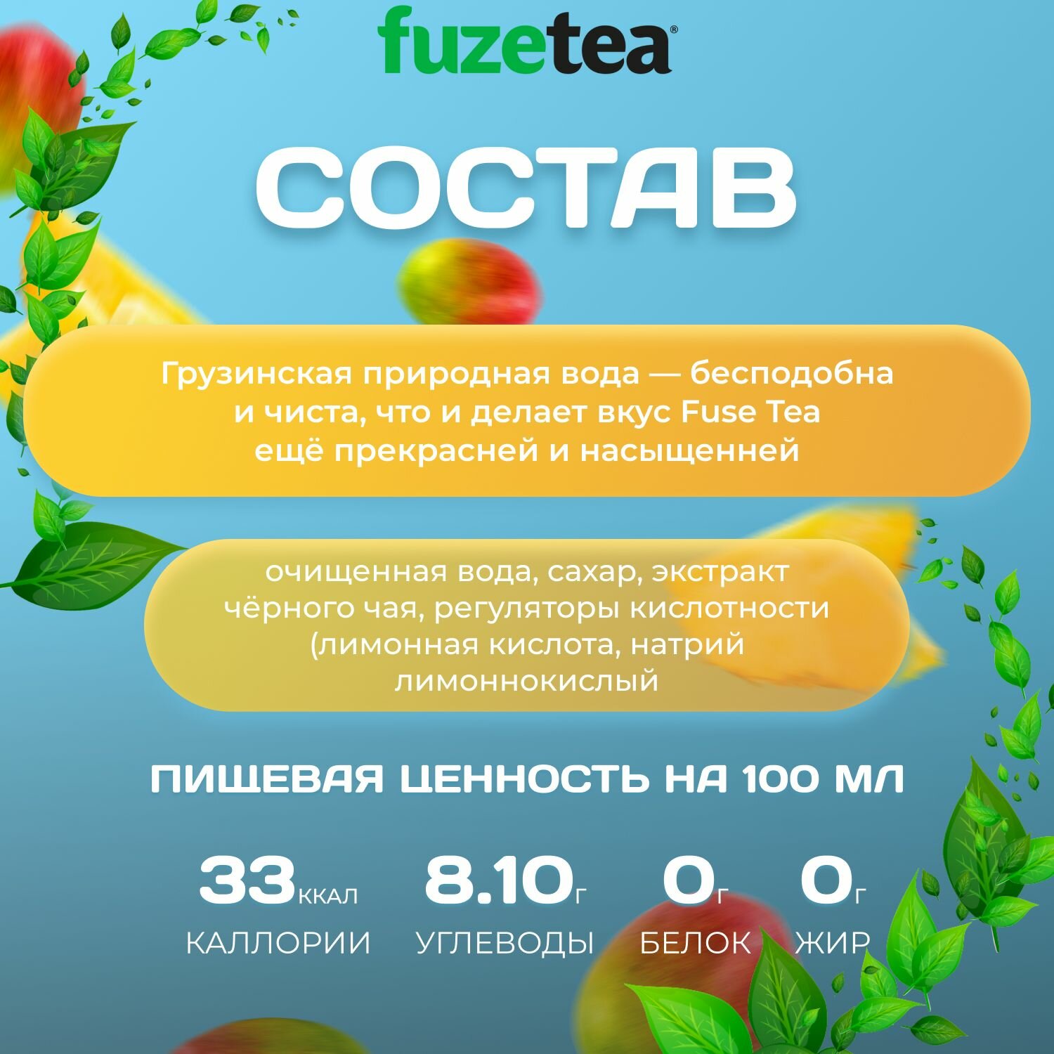 Фьюсти Холодный чай "Ананас-Манго" 6 шт. по 1л. FuseTea интересное: