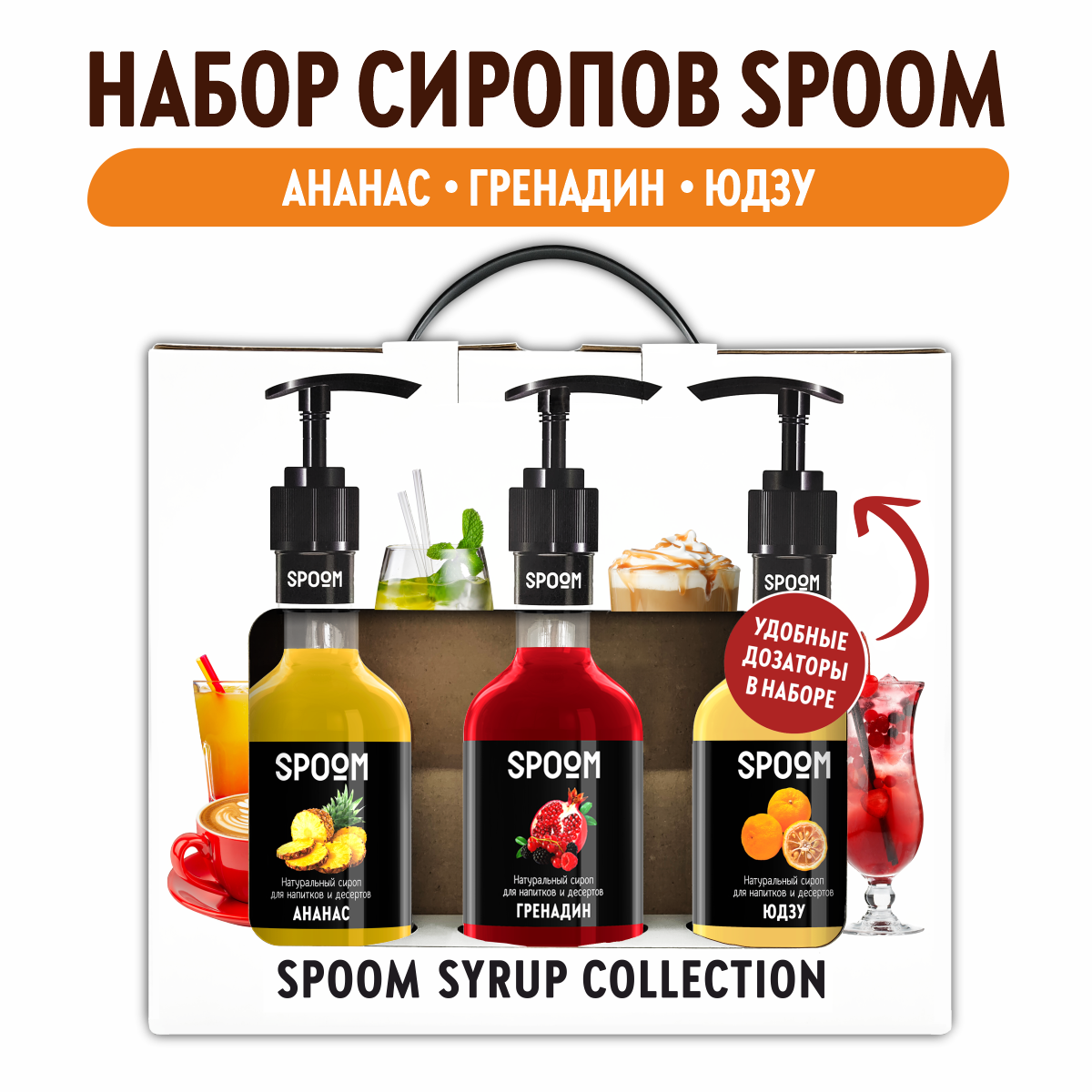 Купить Набор сиропов SPOOM №23 Ананас, Гренадин, Юдзу в фирменной упаковке (3 шт по 250 мл) + 3 дозатора в подарок
