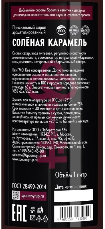 Ниже Вы можете прочитать отзывы на Сироп Spoom Карамель солёная, 1 л, ознакомится с подробными характеристиками, посмотреть интересные обзоры и фотографии на Сироп Spoom Карамель солёная, 1 л.