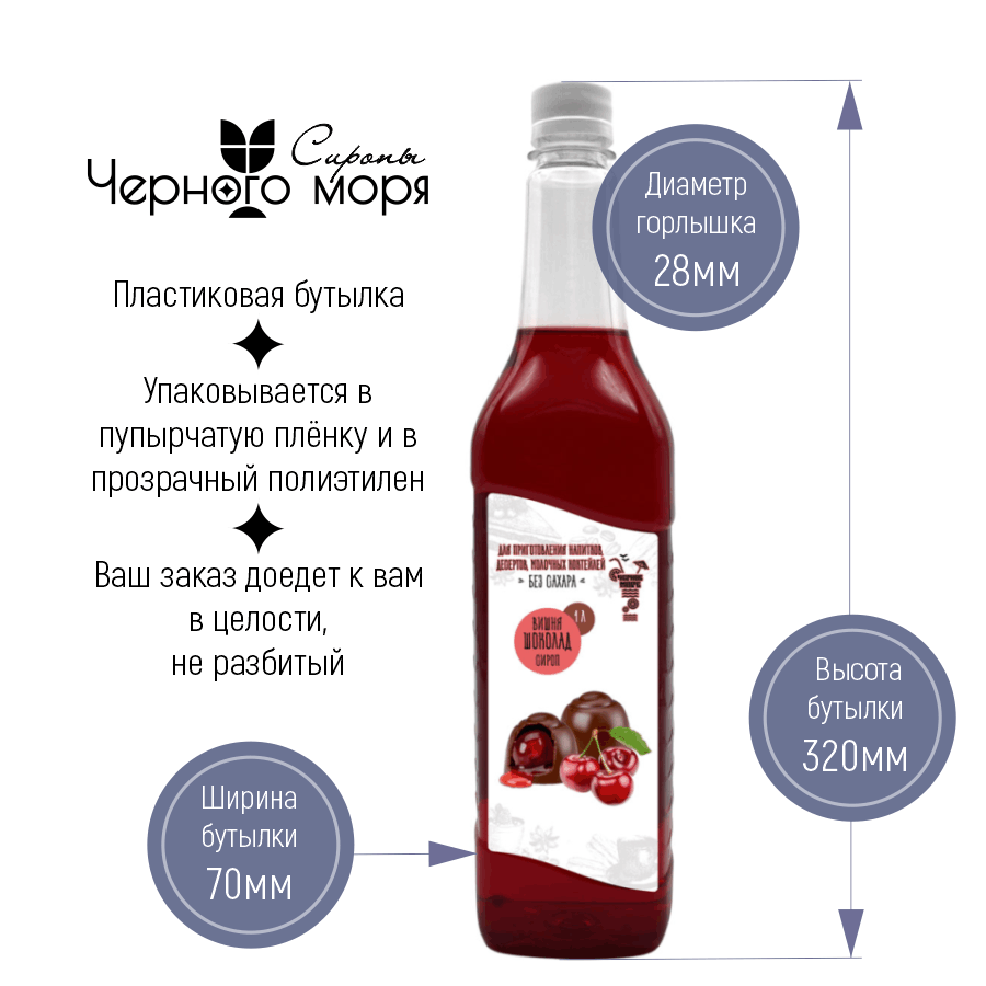 Купить Сироп Без сахара Низкокалорийный Черное Море 1 литр Вишня-шоколад