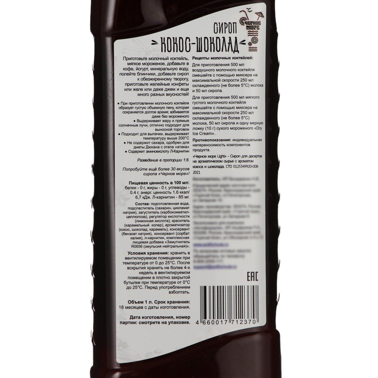Сироп Без сахара Низкокалорийный Черное Море 1 литр Кокос-шоколад