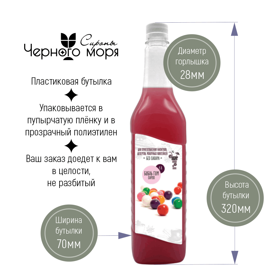 Купить Сироп Без сахара Низкокалорийный Черное Море 1 литр Бубль-гум
