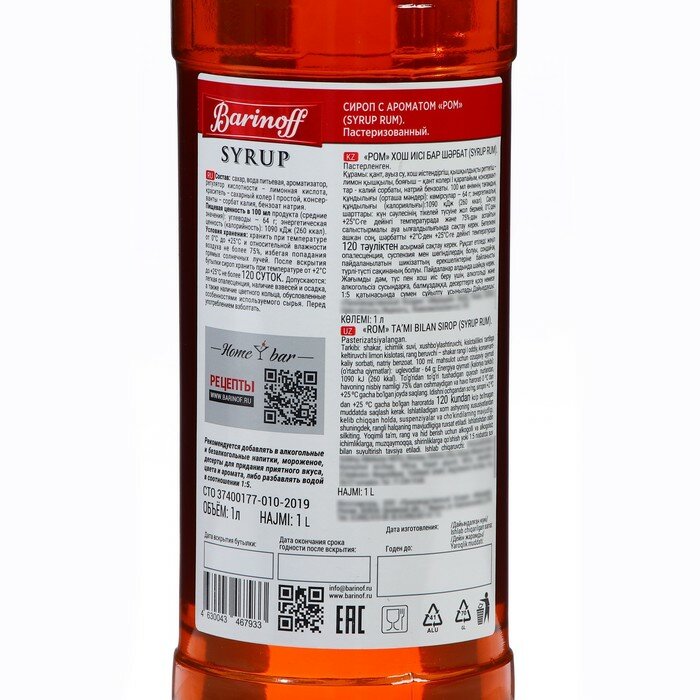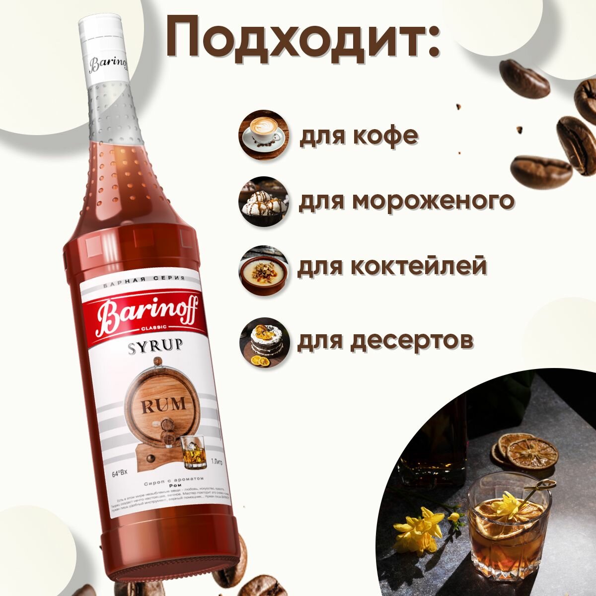 СохранитьСироп Barinoff Ром (для кофе, коктейлей, десертов, лимонада и мороженого), 1л интересное: